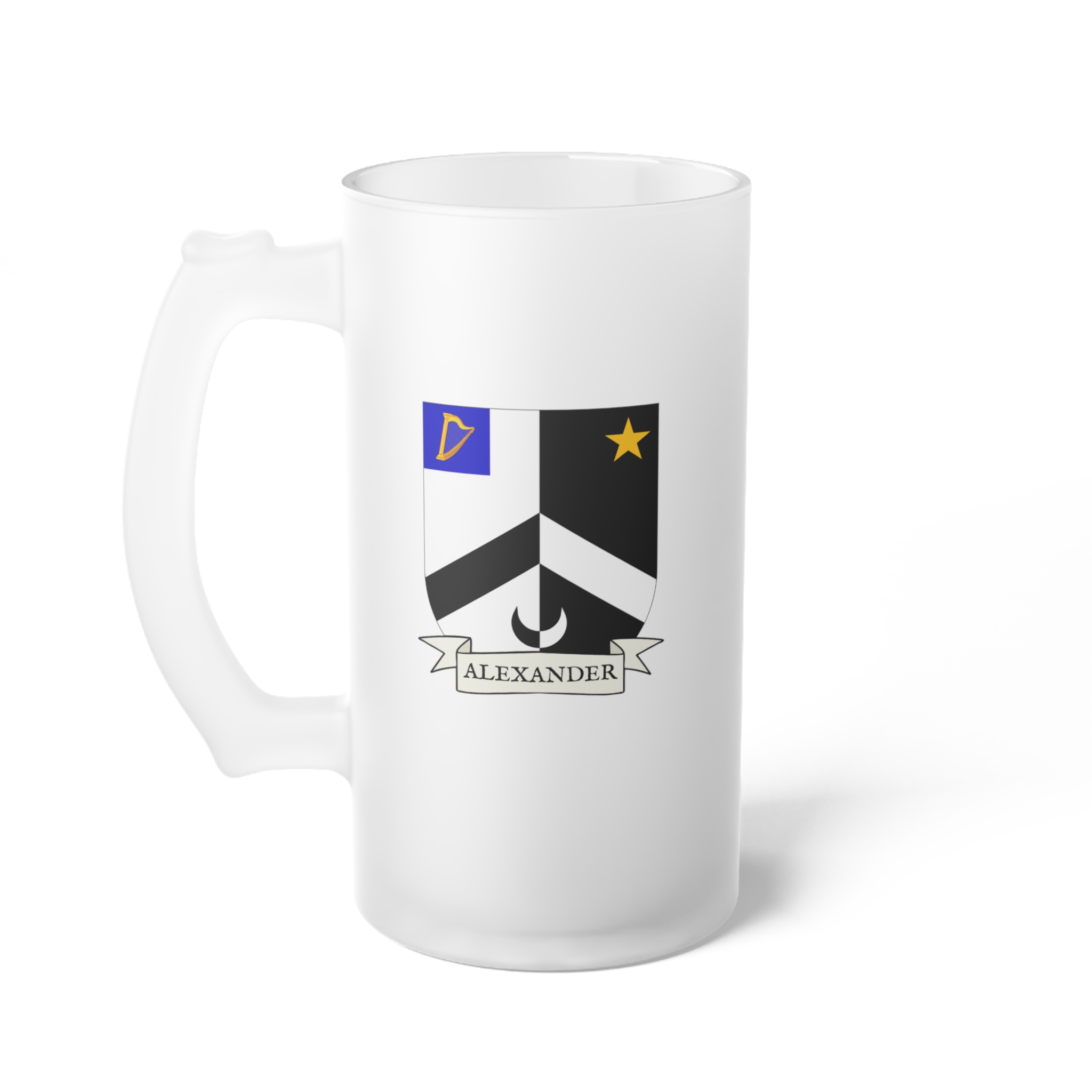 Alexander Family Coat of Arms Frosted Glass 16 oz. Beer Mug