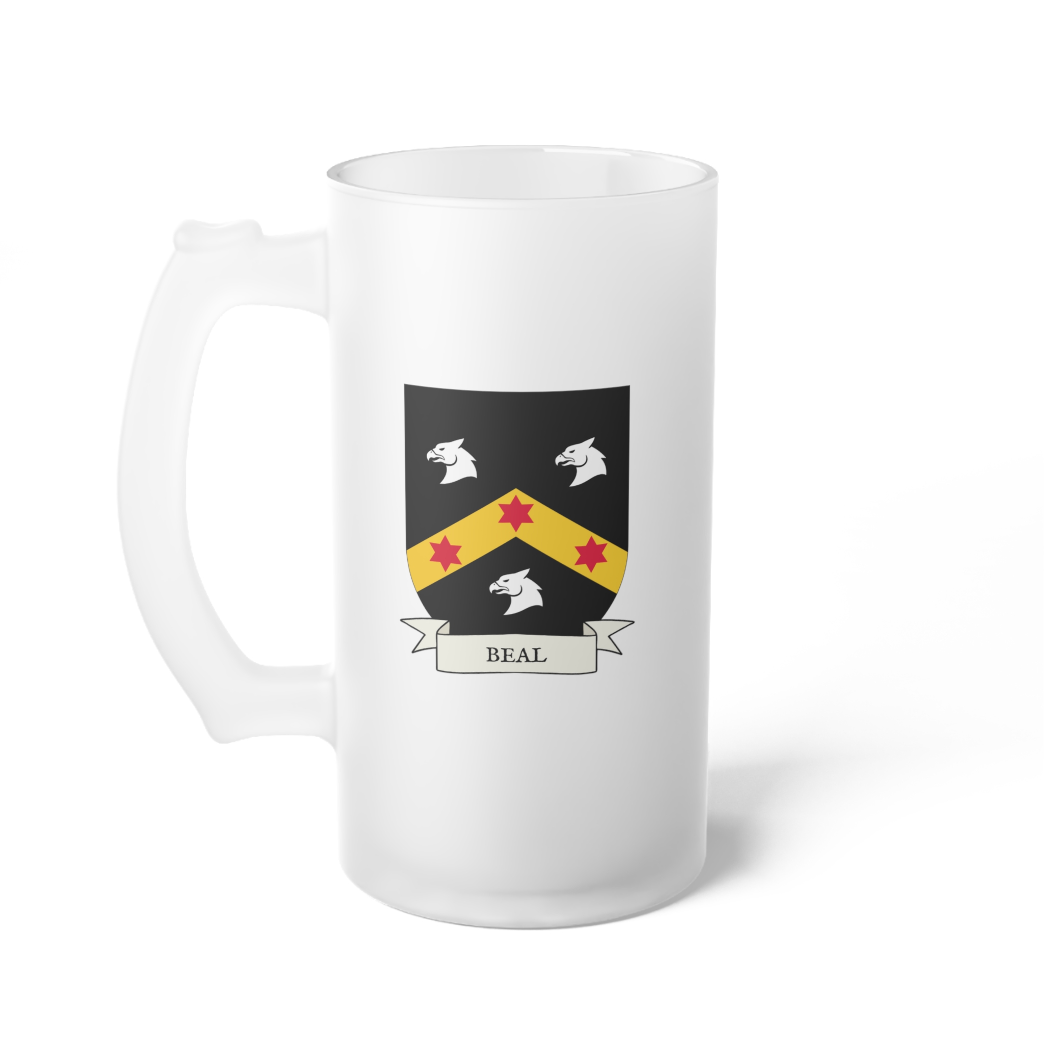 Beal Family Coat of Arms Frosted Glass 16 oz. Beer Mug