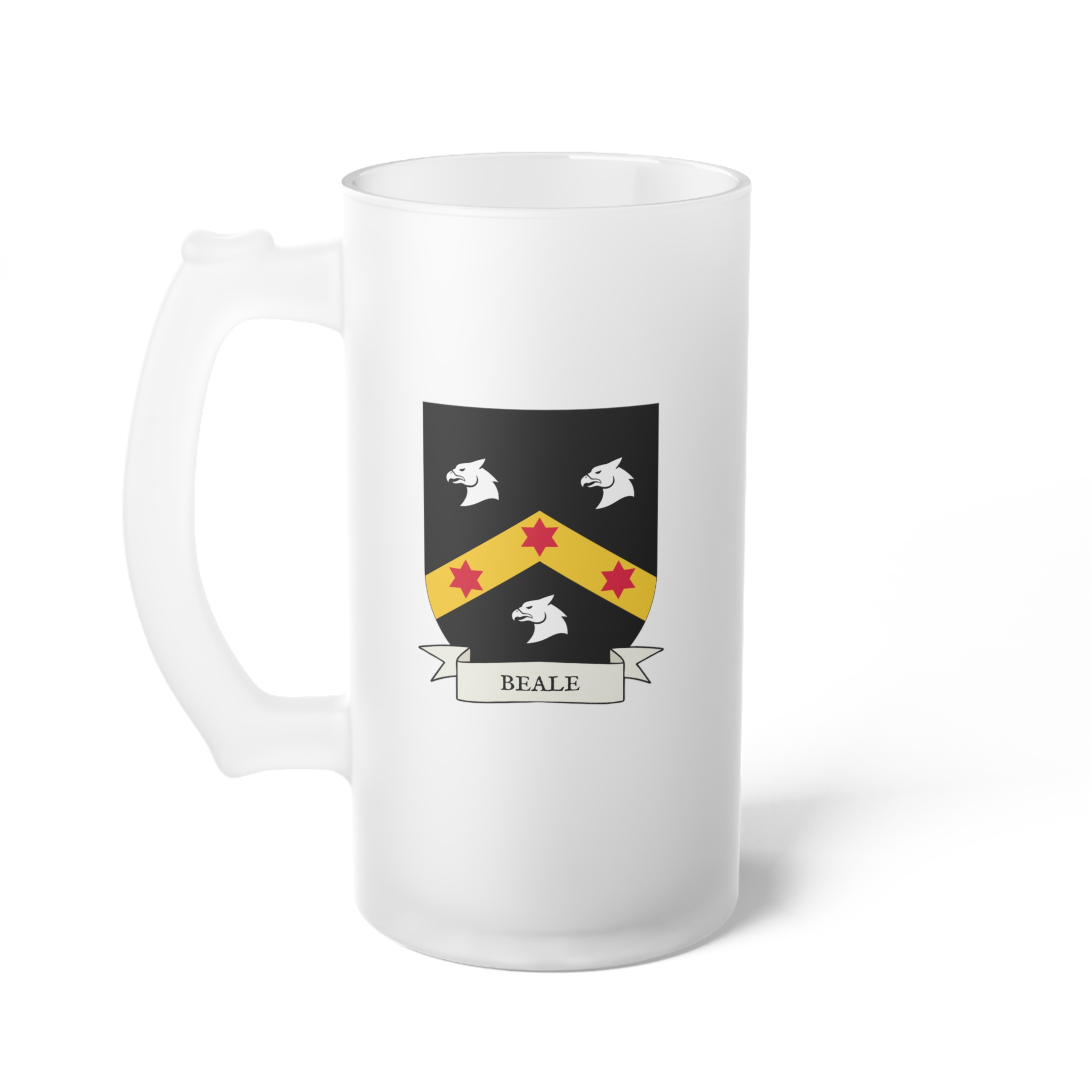 Beale Family Coat of Arms Frosted Glass 16 oz. Beer Mug