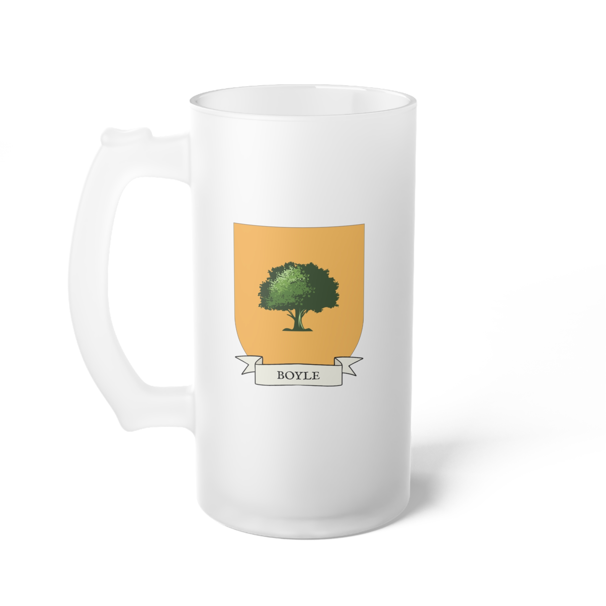 Boyle Family Coat of Arms Frosted Glass 16 oz. Beer Mug