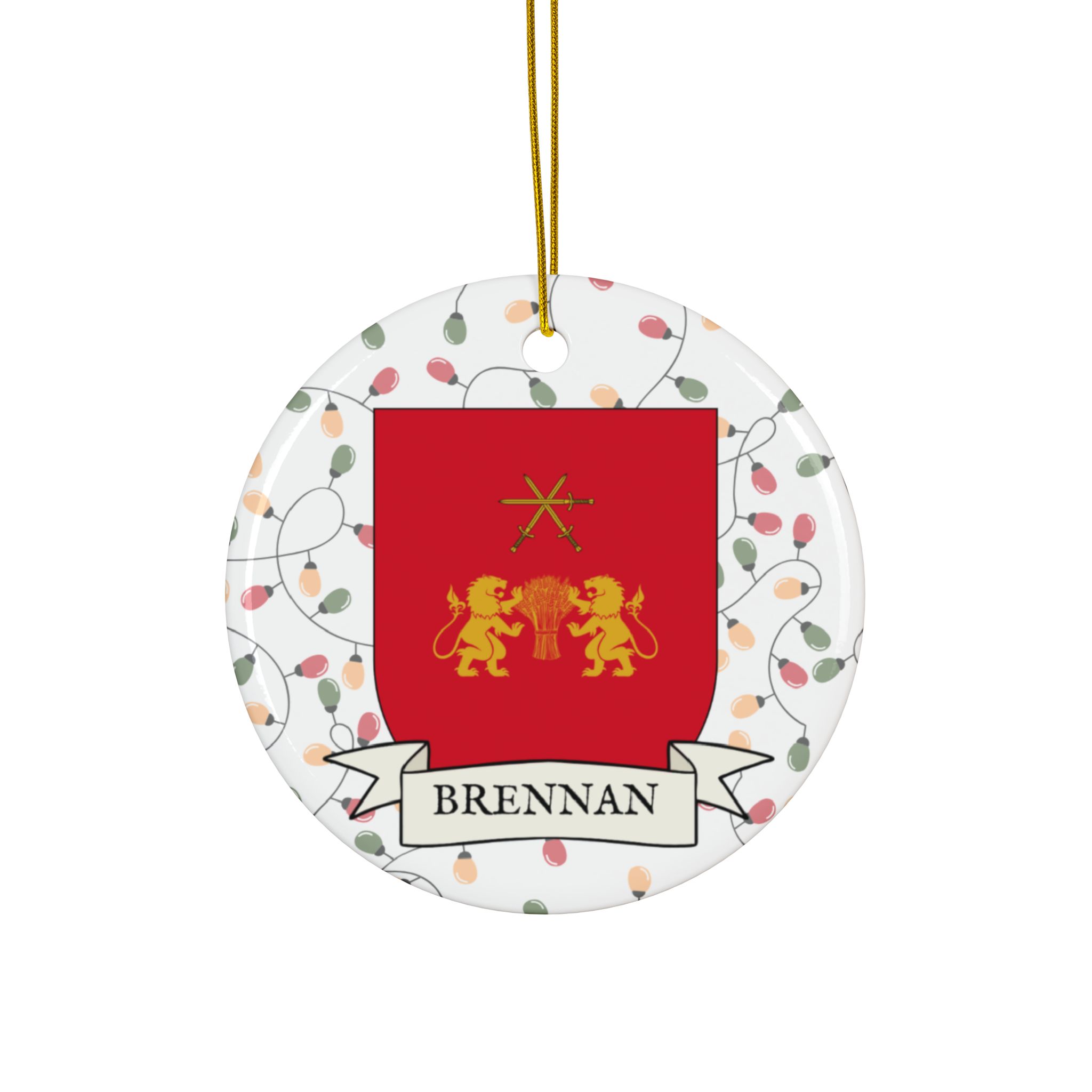 Celebrate the Holidays (and your Irish Heritage) with Irish Family Coat of Arms Christmas Tree Ornaments! Your family’s coat of arms printed on a 100% ceramic ornament with a festive Christmas Tree lights background. Great gift idea for the Irish Americans in your life. It’s sure to become a Christmas tradition!