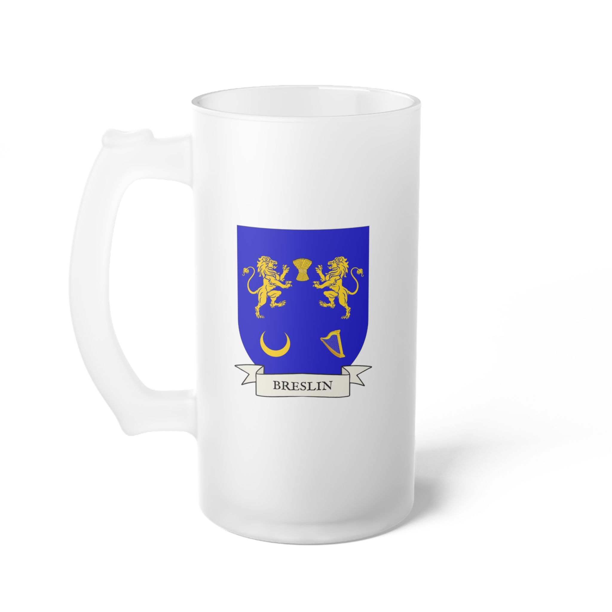Breslin Family Coat of Arms Frosted Glass 16 oz. Beer Mug