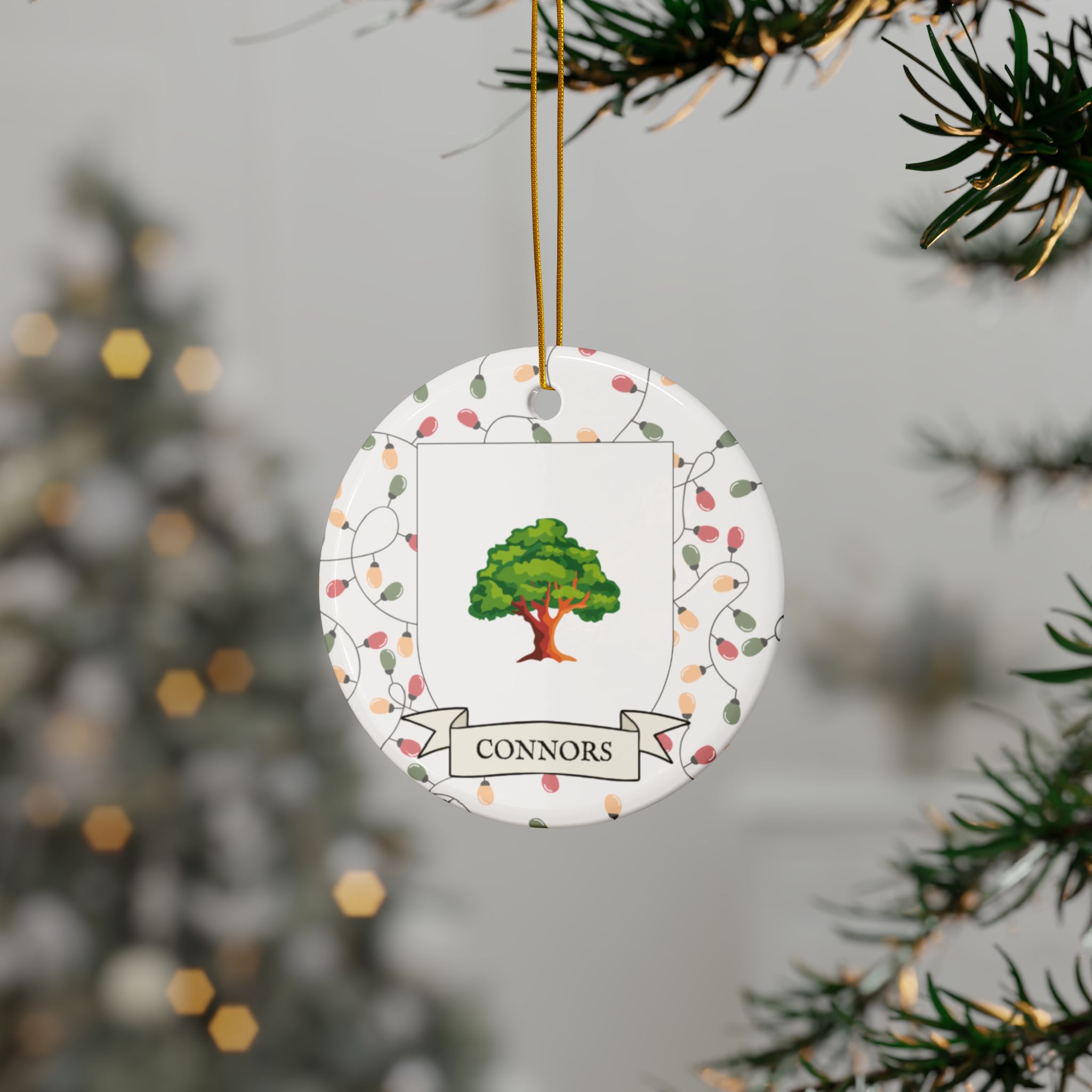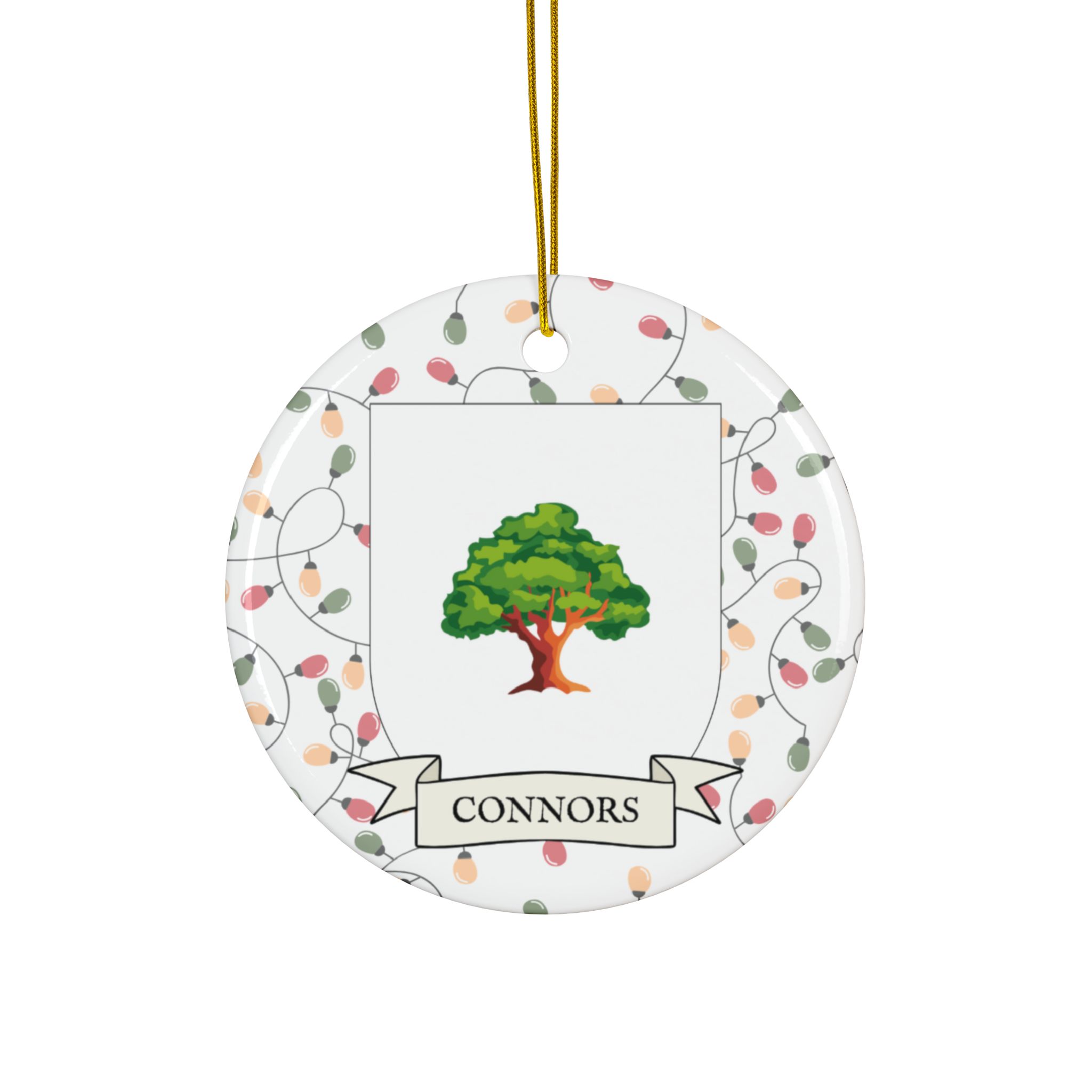 Celebrate the Holidays (and your Irish Heritage) with Irish Family Coat of Arms Christmas Tree Ornaments! Your family’s coat of arms printed on a 100% ceramic ornament with a festive Christmas Tree lights background. Great gift idea for the Irish Americans in your life. It’s sure to become a Christmas tradition!