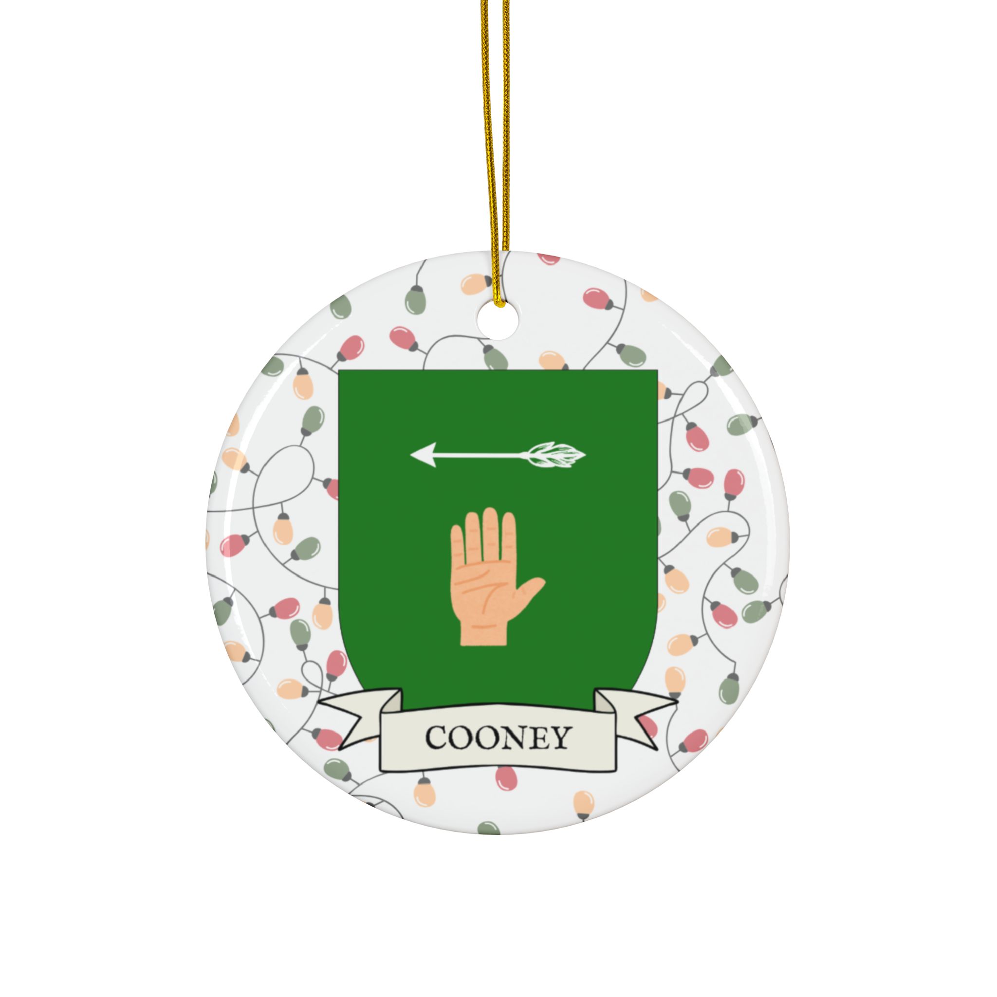 Celebrate the Holidays (and your Irish Heritage) with Irish Family Coat of Arms Christmas Tree Ornaments! Your family’s coat of arms printed on a 100% ceramic ornament with a festive Christmas Tree lights background. Great gift idea for the Irish Americans in your life. It’s sure to become a Christmas tradition!