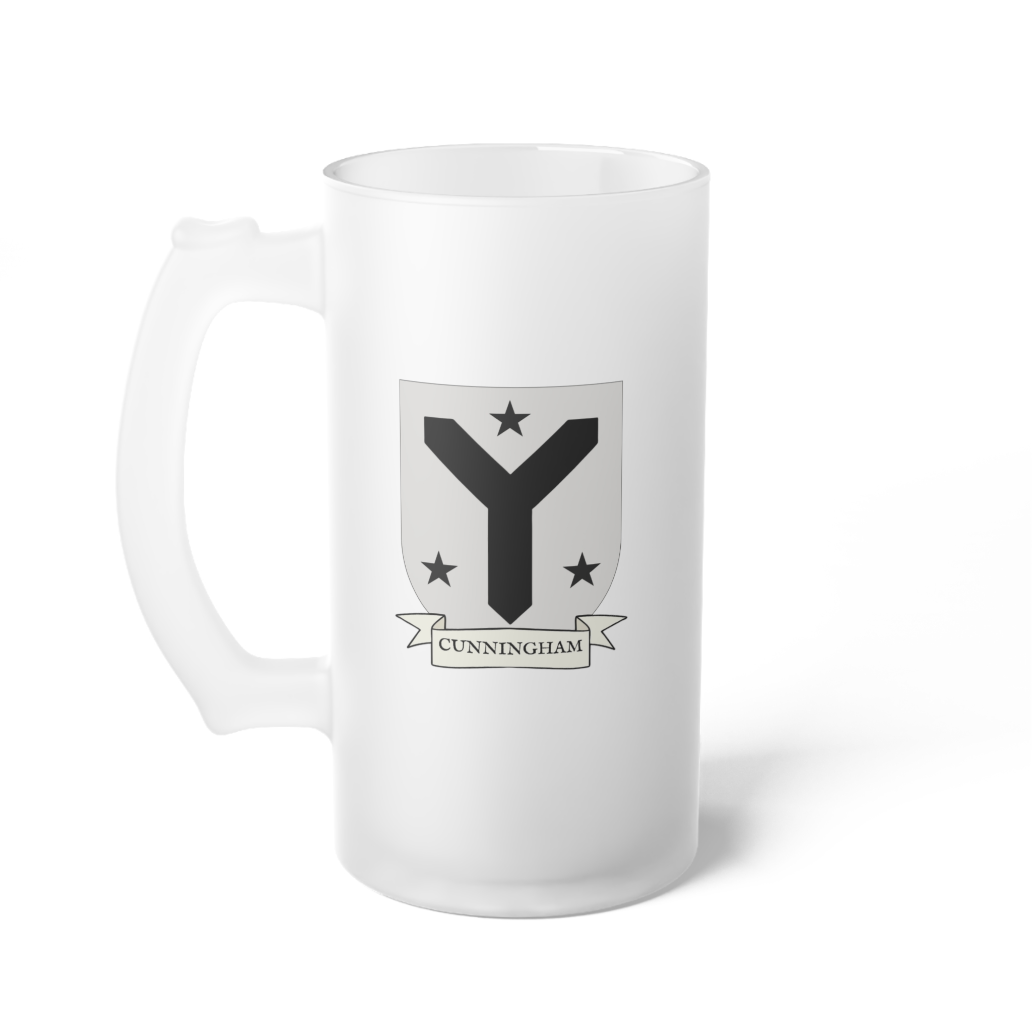 Cunningham Family Coat of Arms Frosted Glass 16 oz. Beer Mug