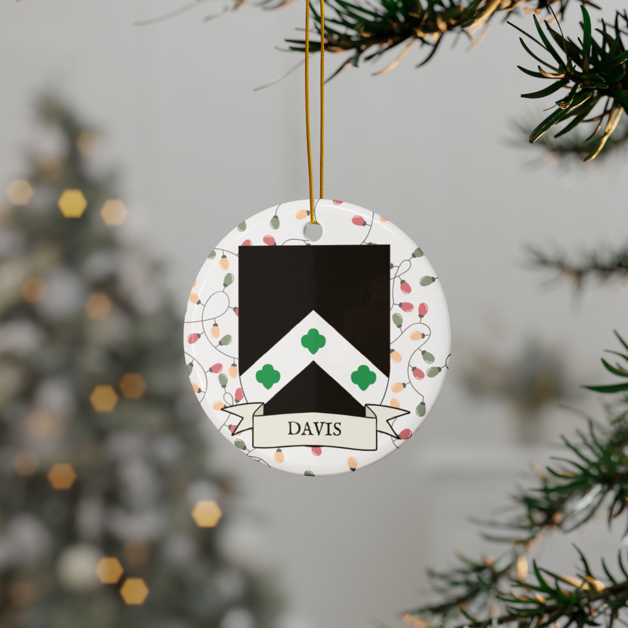 Celebrate the Holidays (and your Irish Heritage) with Irish Family Coat of Arms Christmas Tree Ornaments! Your family’s coat of arms printed on a 100% ceramic ornament with a festive Christmas Tree lights background. Great gift idea for the Irish Americans in your life. It’s sure to become a Christmas tradition!