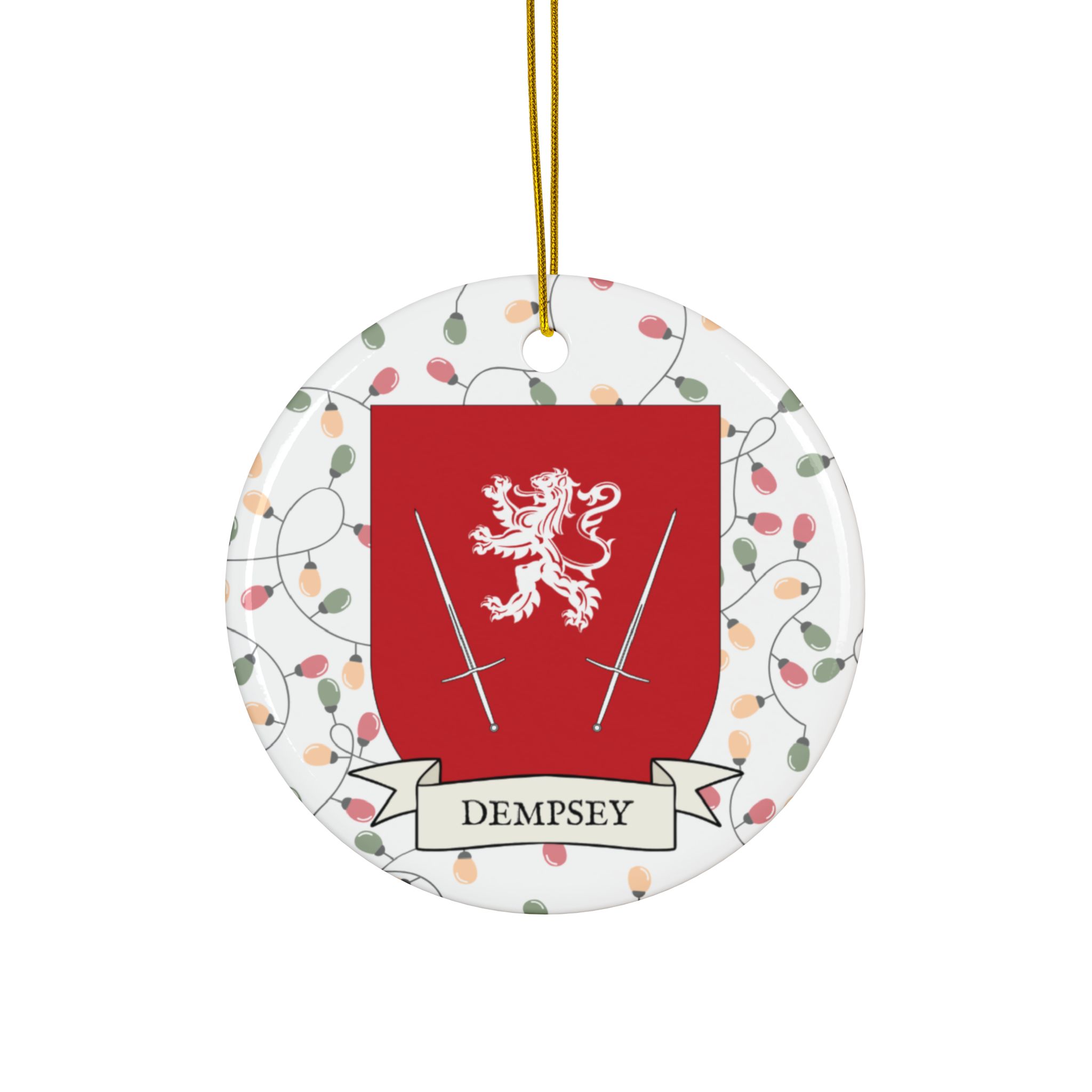 Celebrate the Holidays (and your Irish Heritage) with Irish Family Coat of Arms Christmas Tree Ornaments! Your family’s coat of arms printed on a 100% ceramic ornament with a festive Christmas Tree lights background. Great gift idea for the Irish Americans in your life. It’s sure to become a Christmas tradition!