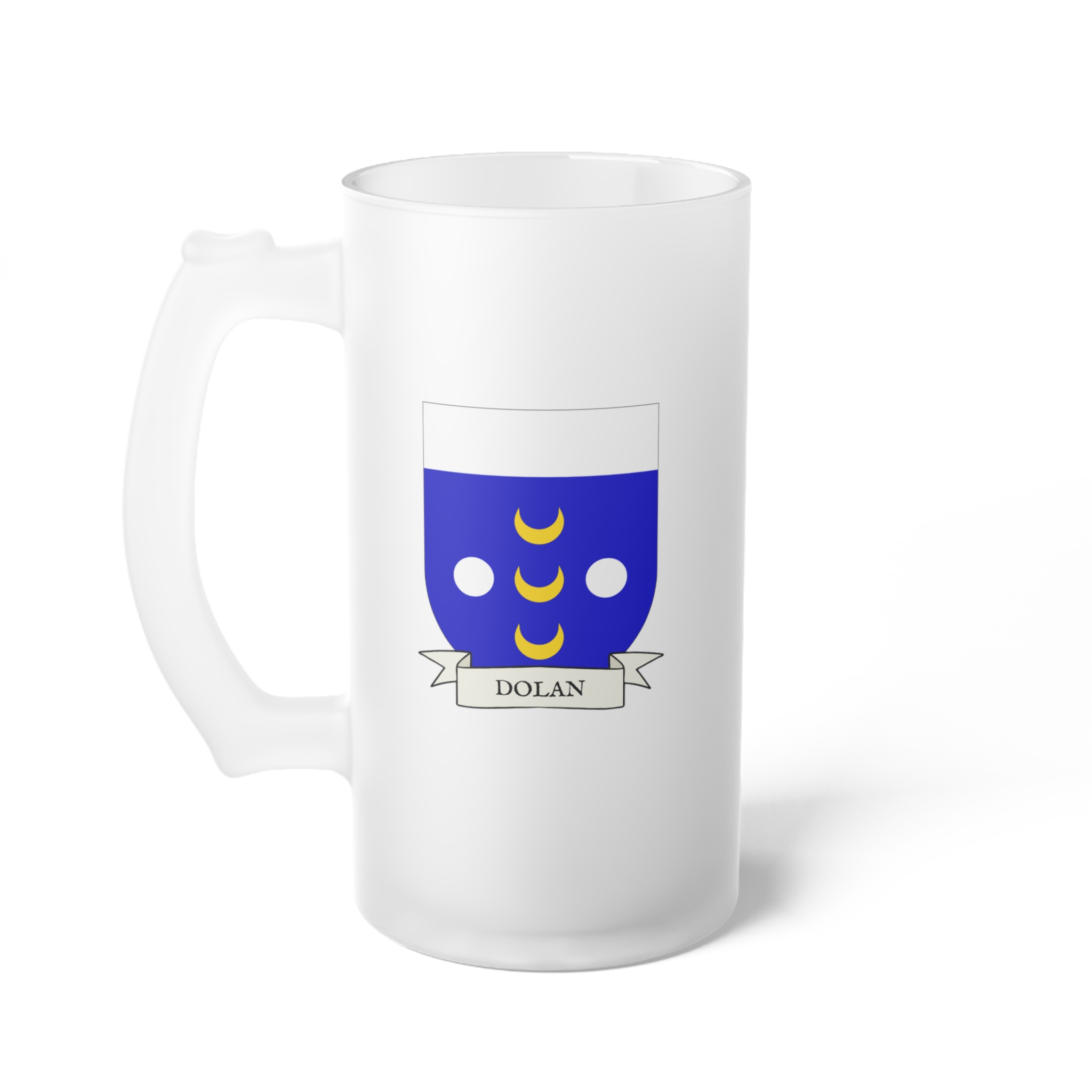 Dolan Family Coat of Arms Frosted Glass 16 oz. Beer Mug