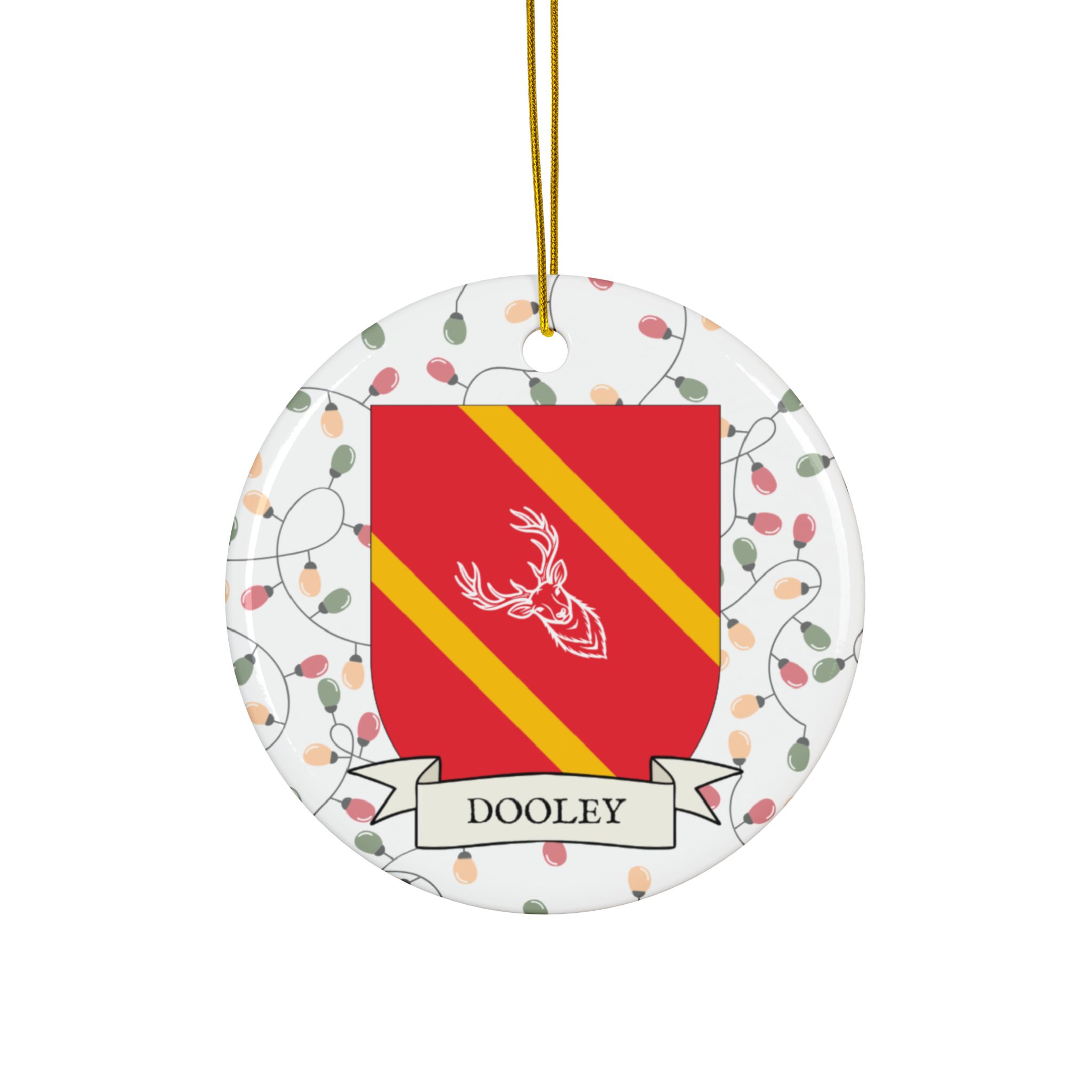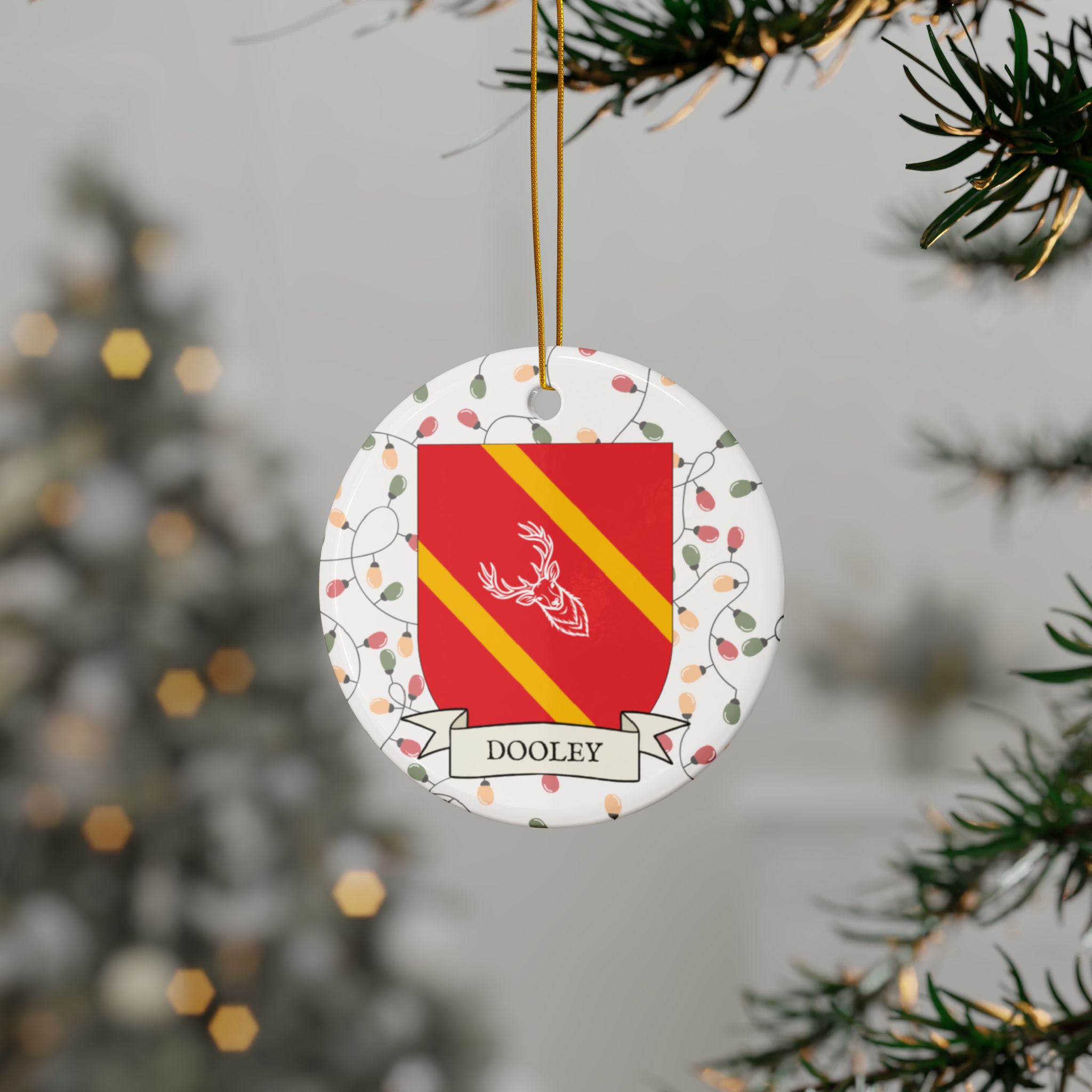 Celebrate the Holidays (and your Irish Heritage) with Irish Family Coat of Arms Christmas Tree Ornaments! Your family’s coat of arms printed on a 100% ceramic ornament with a festive Christmas Tree lights background. Great gift idea for the Irish Americans in your life. It’s sure to become a Christmas tradition!