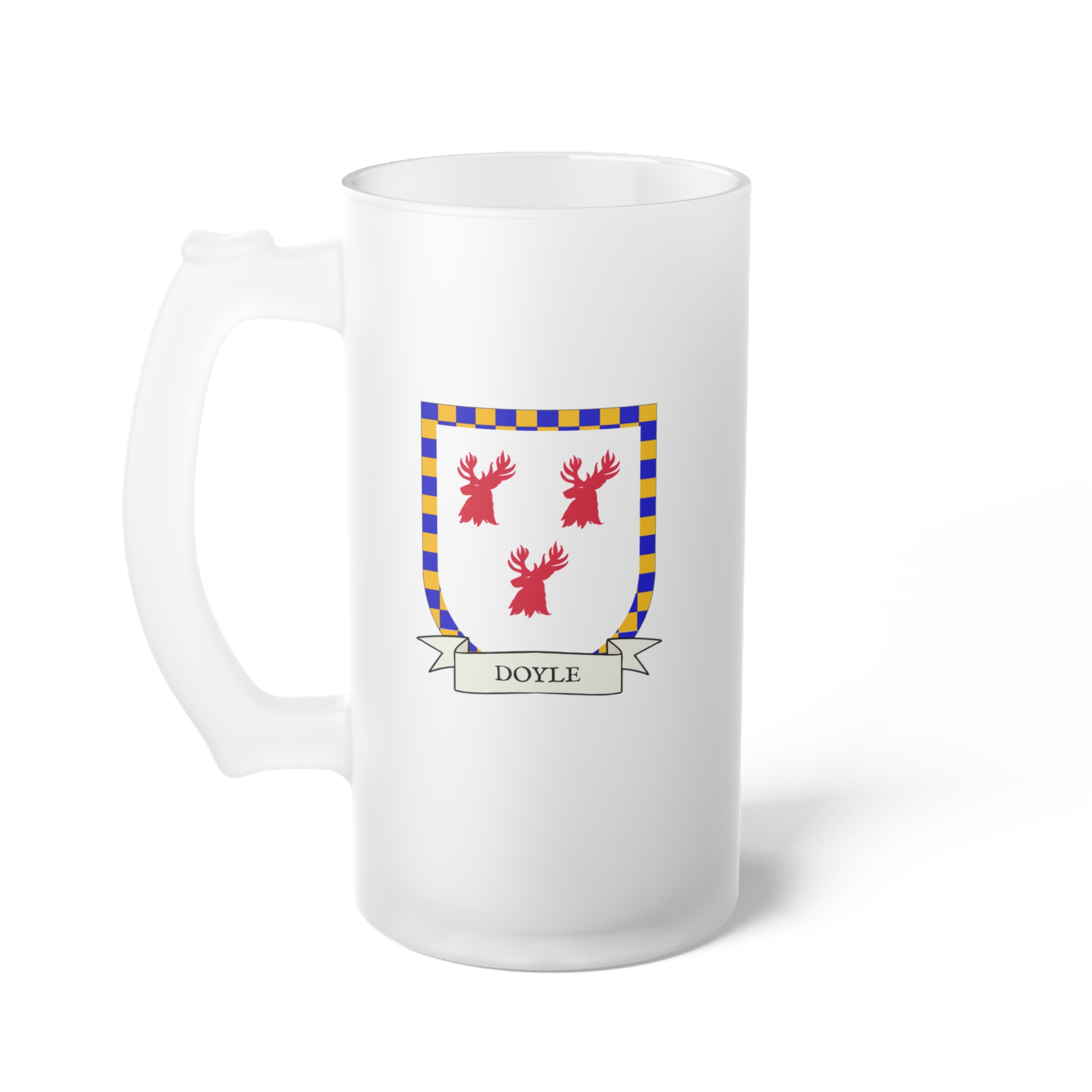 Doyle Family Coat of Arms Frosted Glass 16 oz. Beer Mug