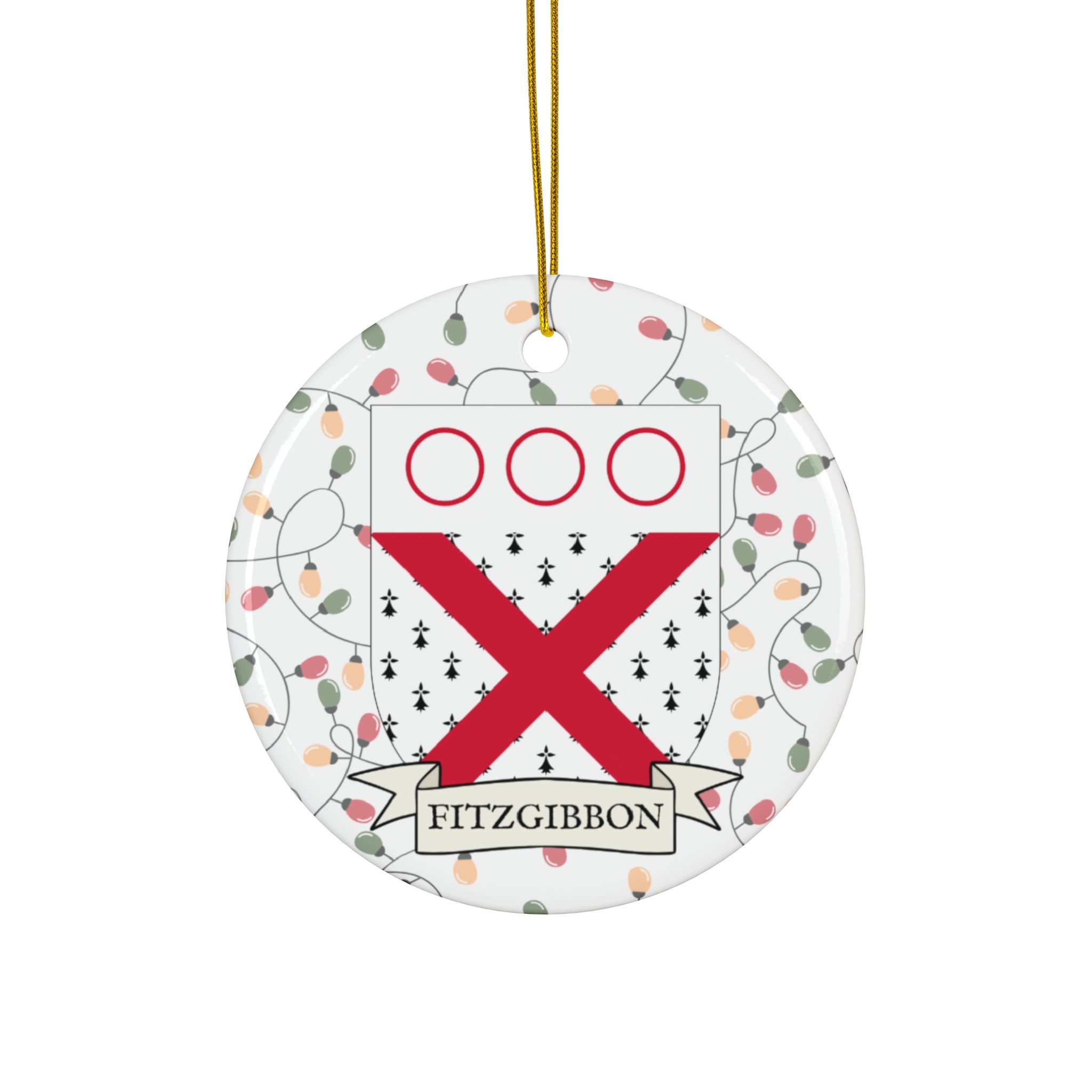 Celebrate the Holidays (and your Irish Heritage) with Irish Family Coat of Arms Christmas Tree Ornaments! Your family’s coat of arms printed on a 100% ceramic ornament with a festive Christmas Tree lights background. Great gift idea for the Irish Americans in your life. It’s sure to become a Christmas tradition!