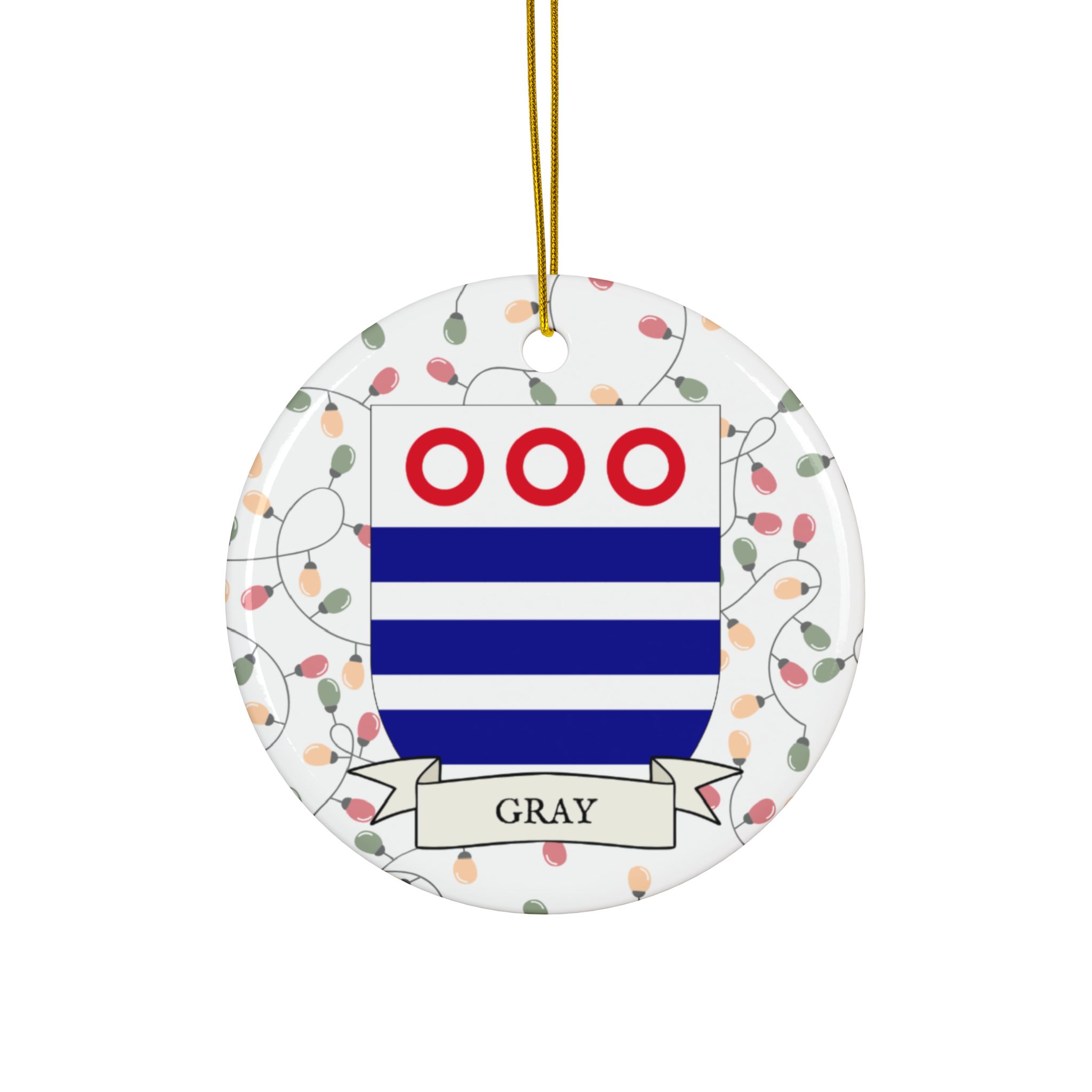 Celebrate the Holidays (and your Irish Heritage) with Irish Family Coat of Arms Christmas Tree Ornaments! Your family’s coat of arms printed on a 100% ceramic ornament with a festive Christmas Tree lights background. Great gift idea for the Irish Americans in your life. It’s sure to become a Christmas tradition!