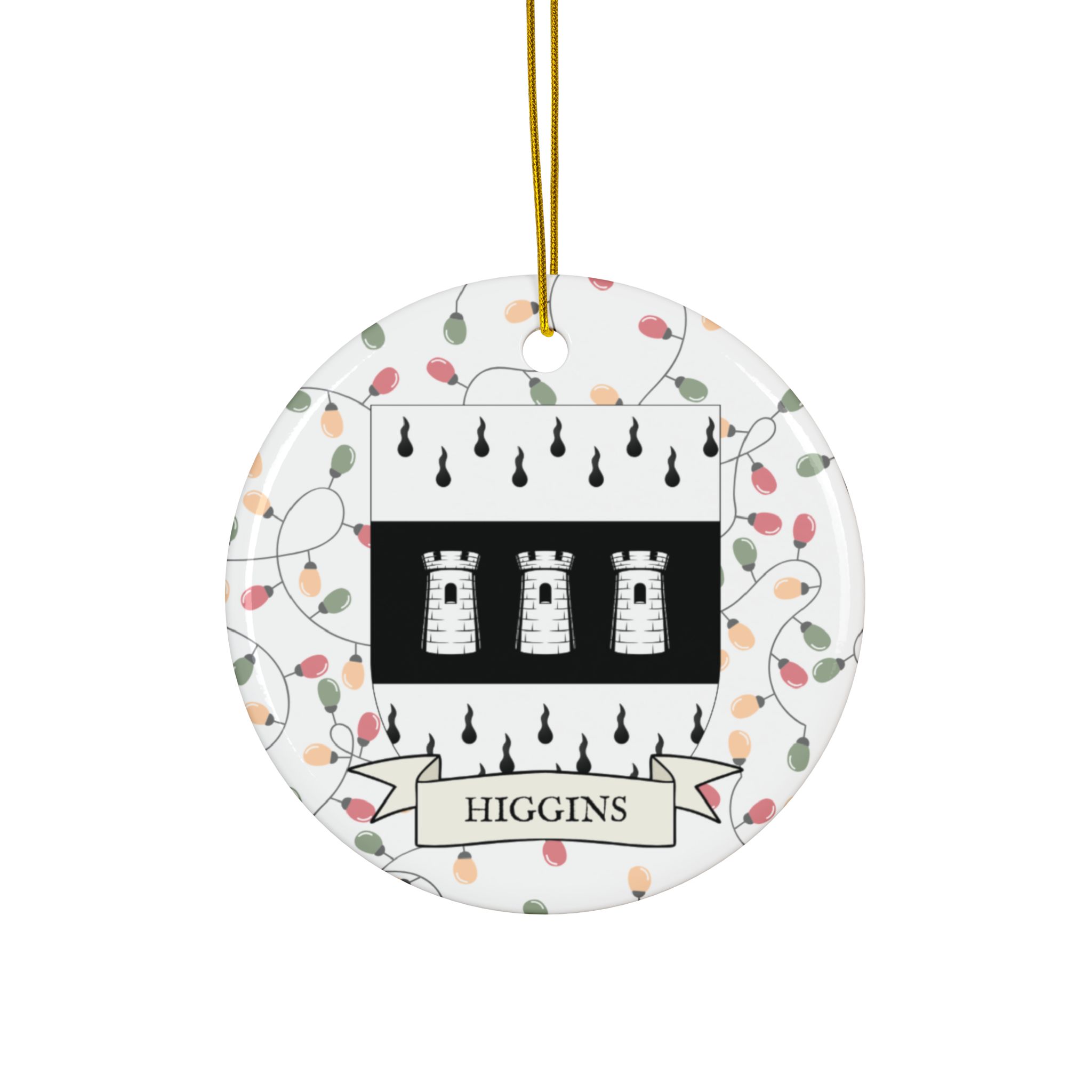 Celebrate the Holidays (and your Irish Heritage) with Irish Family Coat of Arms Christmas Tree Ornaments! Your family’s coat of arms printed on a 100% ceramic ornament with a festive Christmas Tree lights background. Great gift idea for the Irish Americans in your life. It’s sure to become a Christmas tradition!