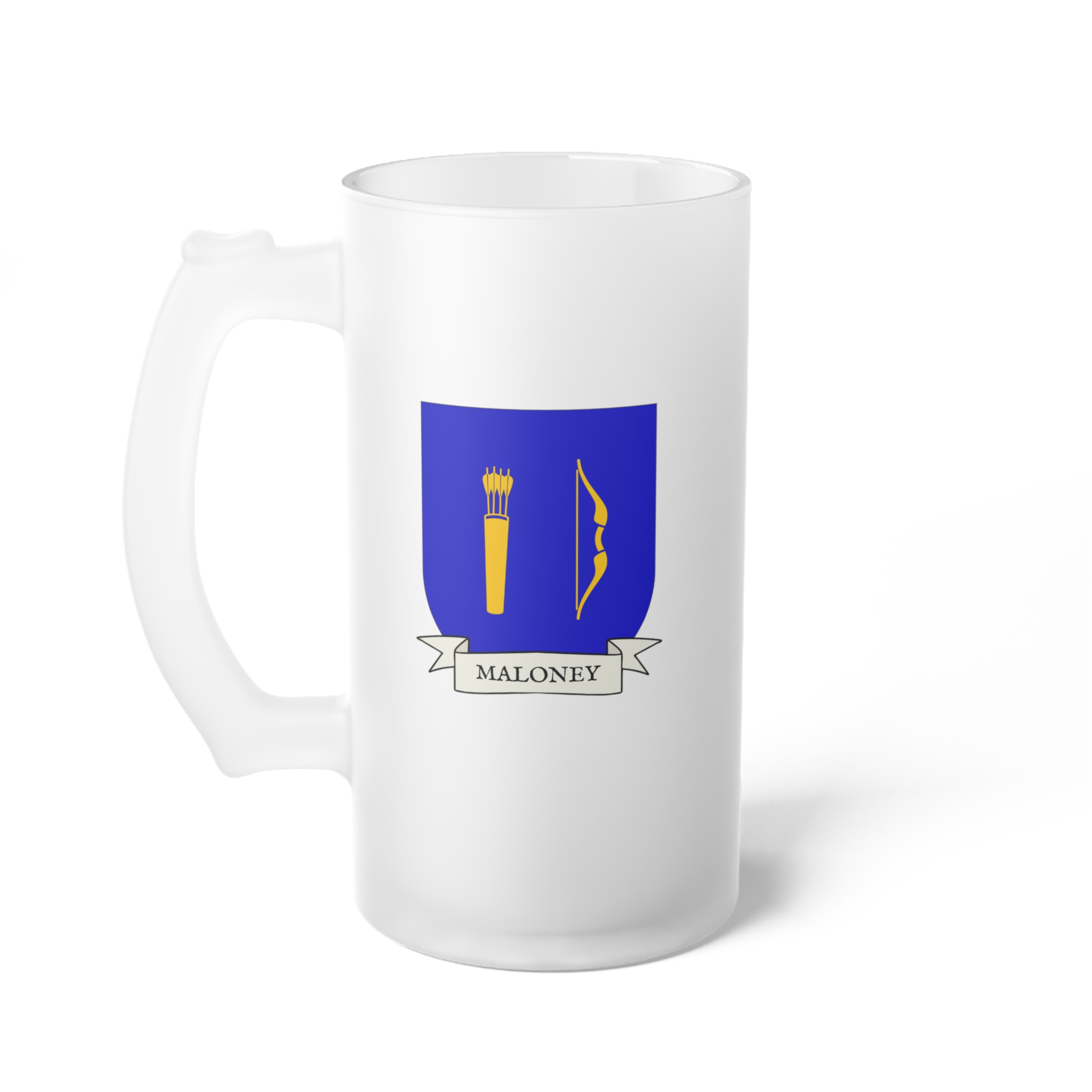 Maloney Family Coat of Arms Frosted Glass 16 oz. Beer Mug