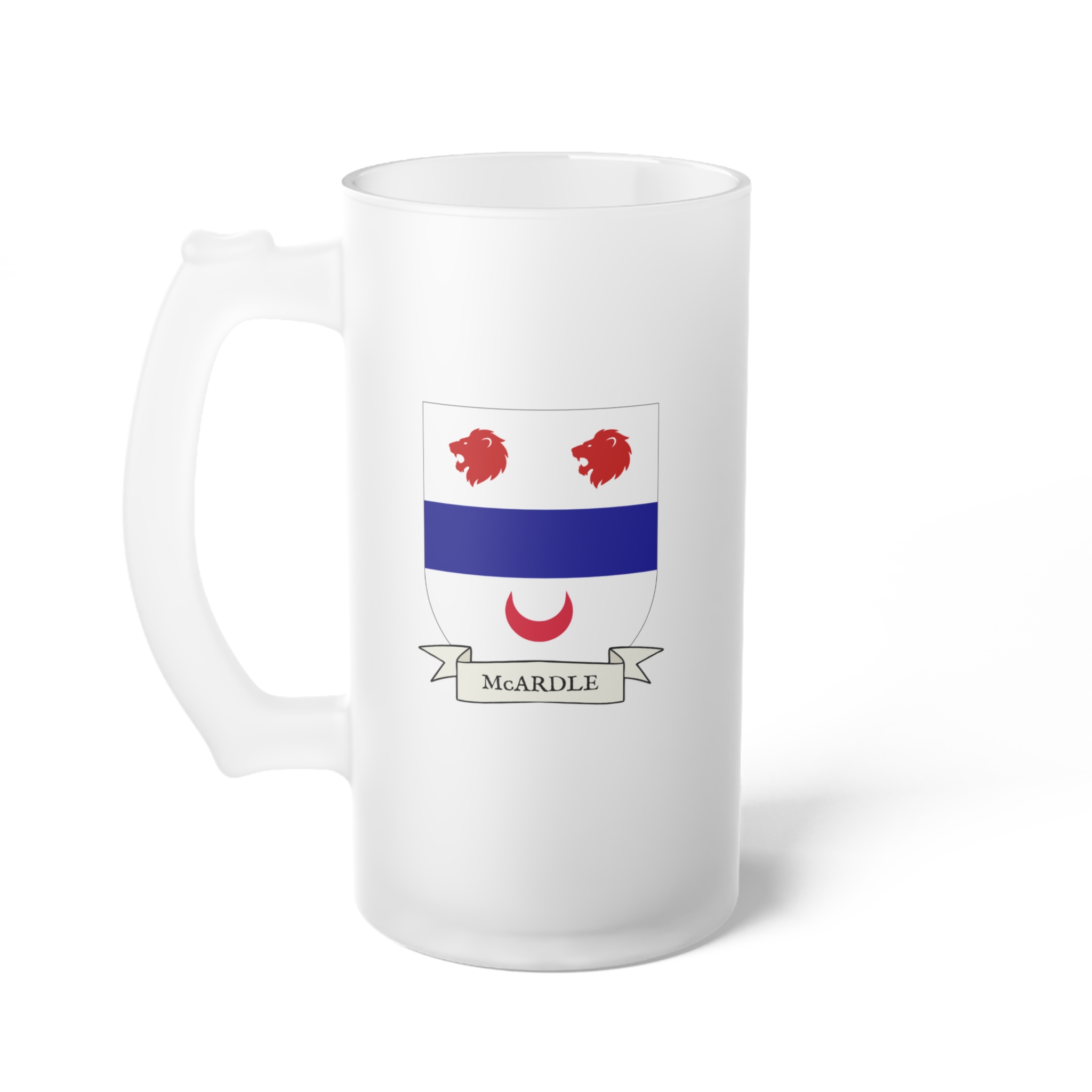 McArdle Family Coat of Arms Frosted Glass 16 oz. Beer Mug