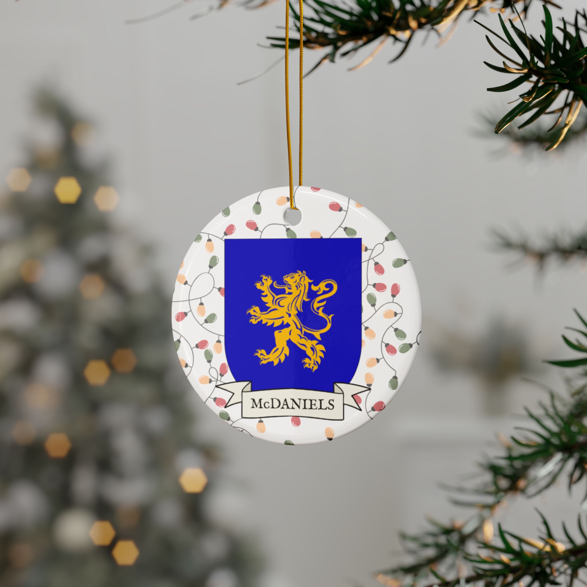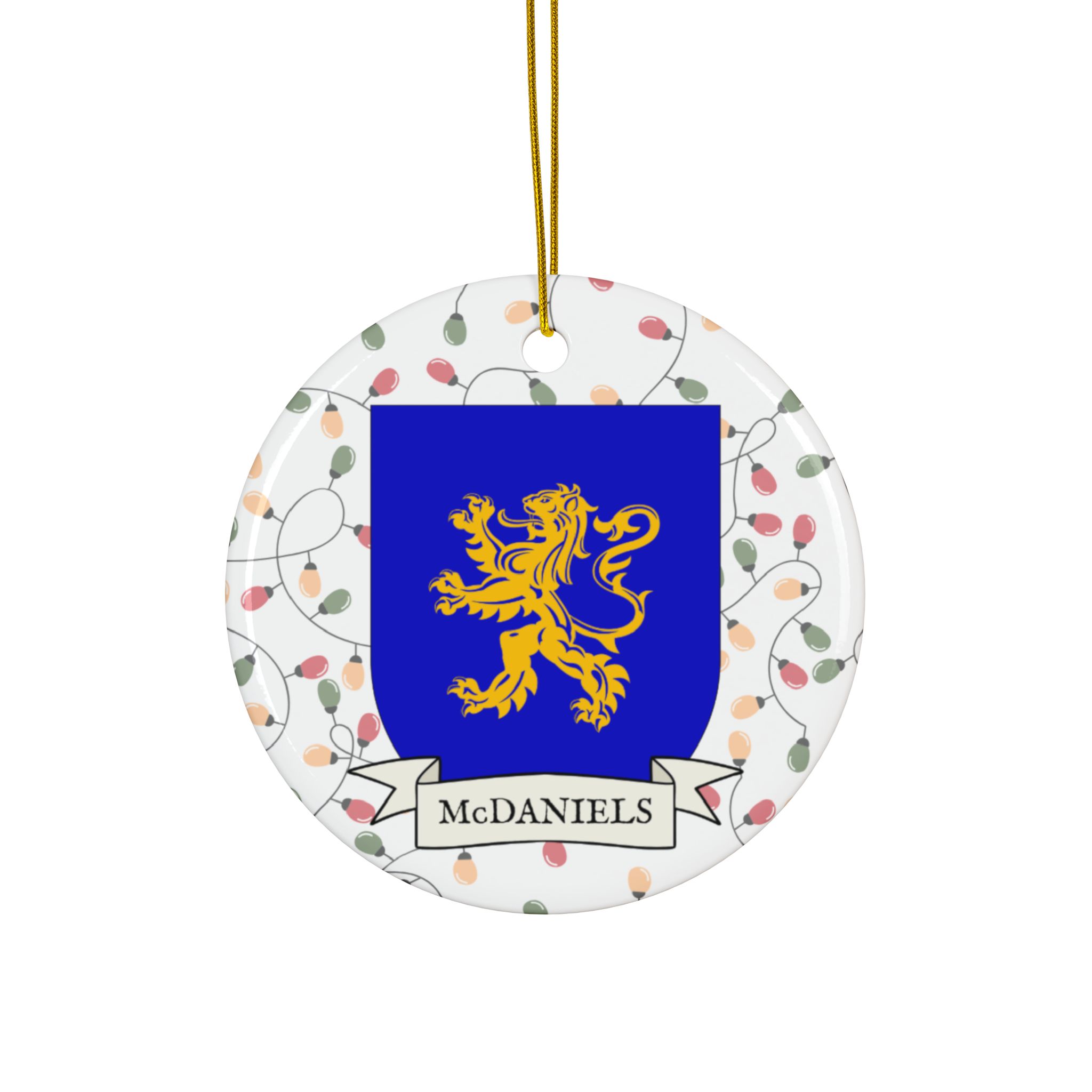 Celebrate the Holidays (and your Irish Heritage) with Irish Family Coat of Arms Christmas Tree Ornaments! Your family’s coat of arms printed on a 100% ceramic ornament with a festive Christmas Tree lights background. Great gift idea for the Irish Americans in your life. It’s sure to become a Christmas tradition!