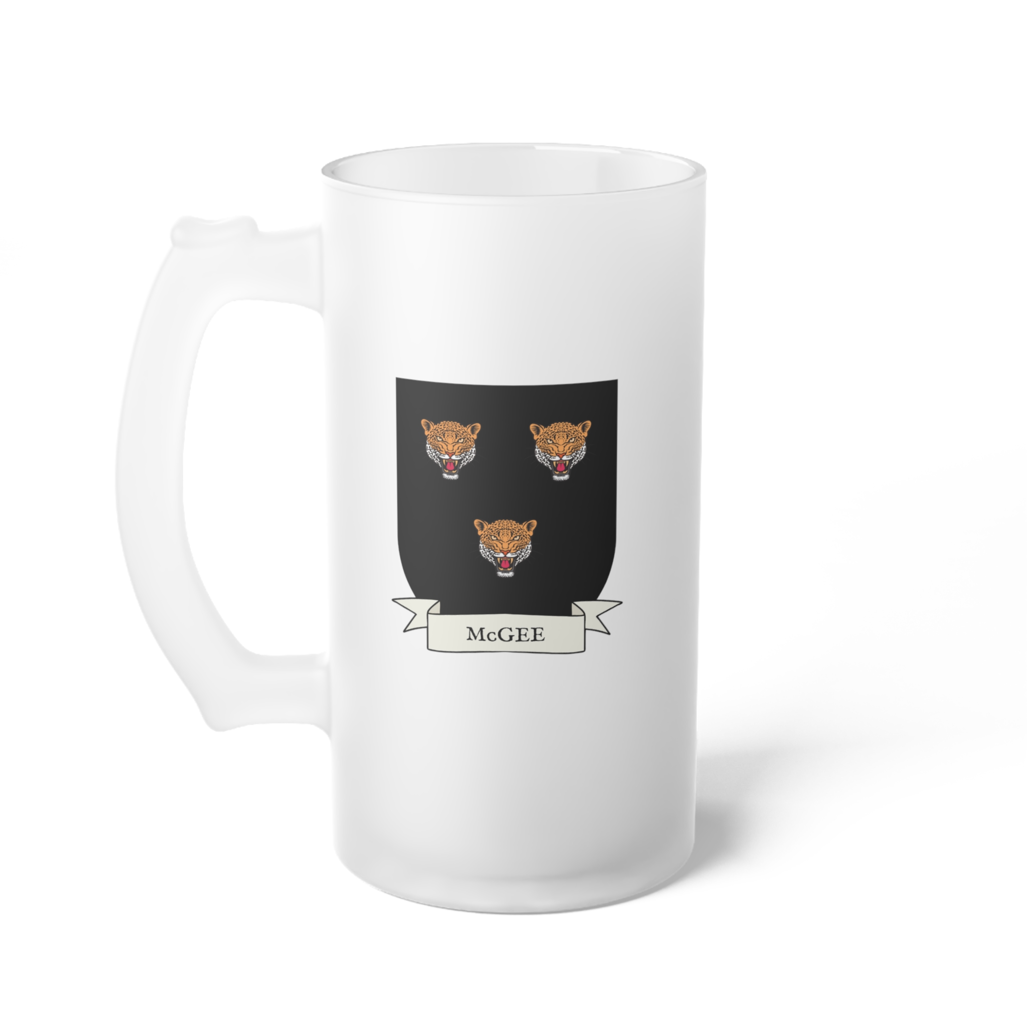 McGee Family Coat of Arms Frosted Glass 16 oz. Beer Mug
