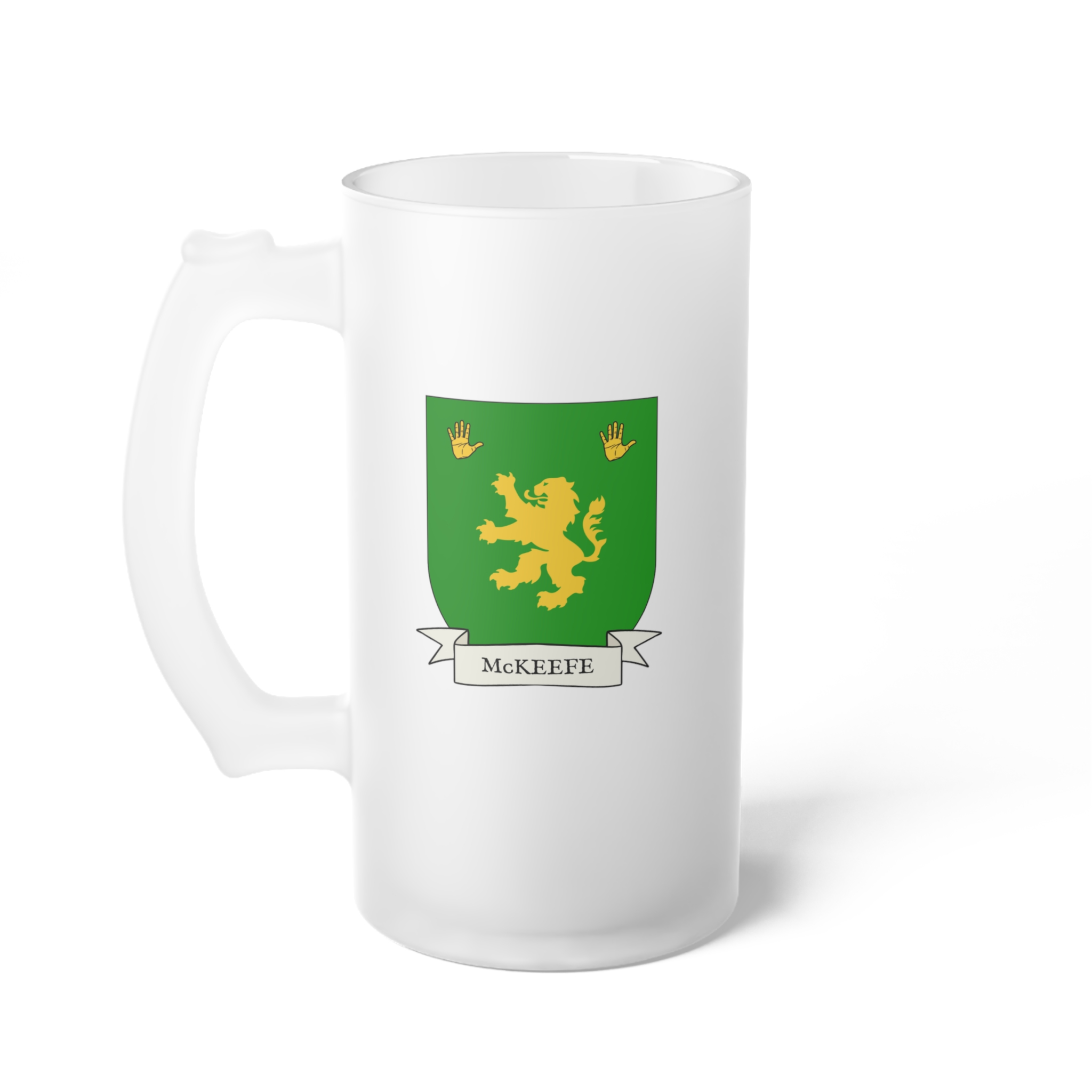 McKeefe Family Coat of Arms Frosted Glass 16 oz. Beer Mug