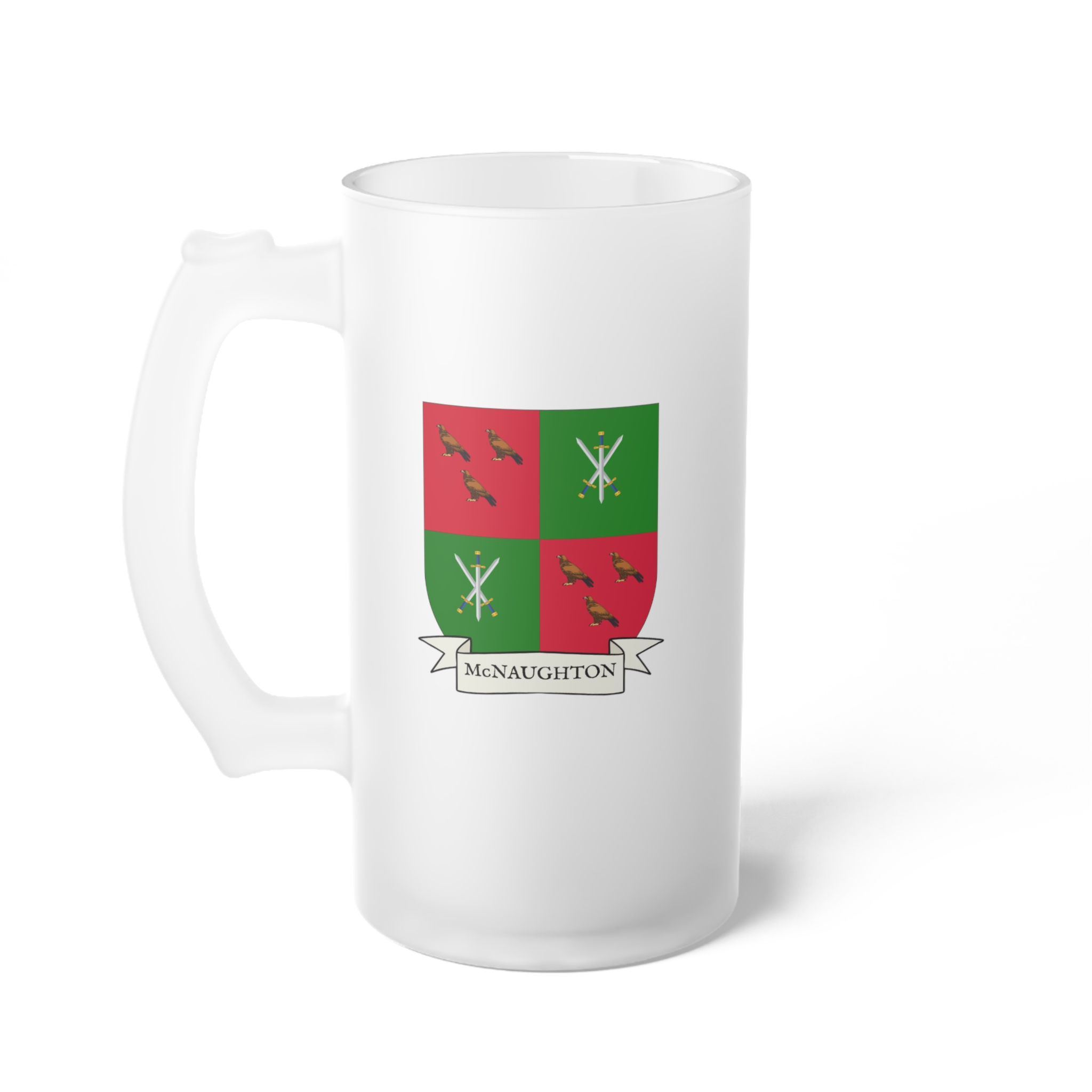 McNaughton Family Coat of Arms Frosted Glass 16 oz. Beer Mug