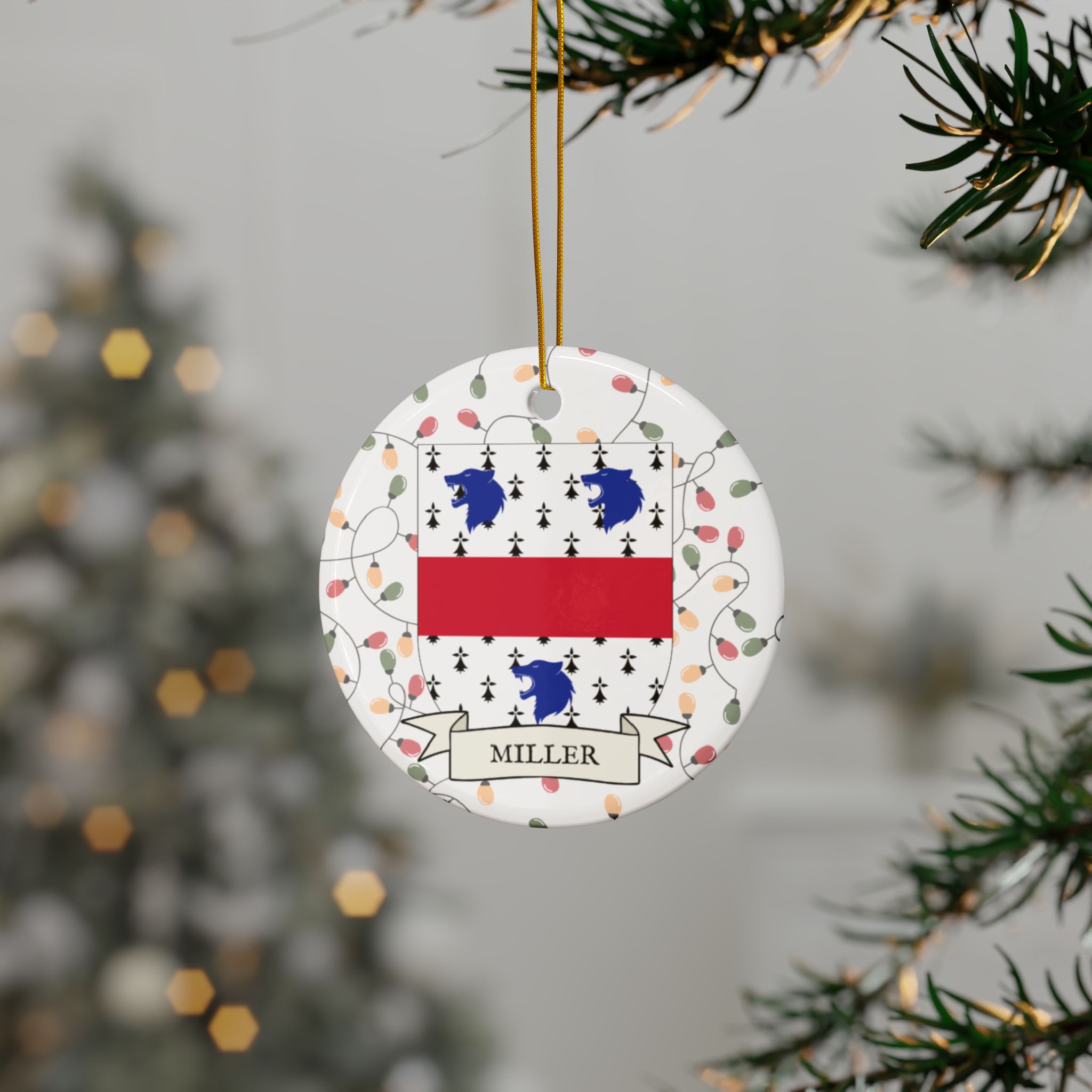 Celebrate the Holidays (and your Irish Heritage) with Irish Family Coat of Arms Christmas Tree Ornaments! Your family’s coat of arms printed on a 100% ceramic ornament with a festive Christmas Tree lights background. Great gift idea for the Irish Americans in your life. It’s sure to become a Christmas tradition!
