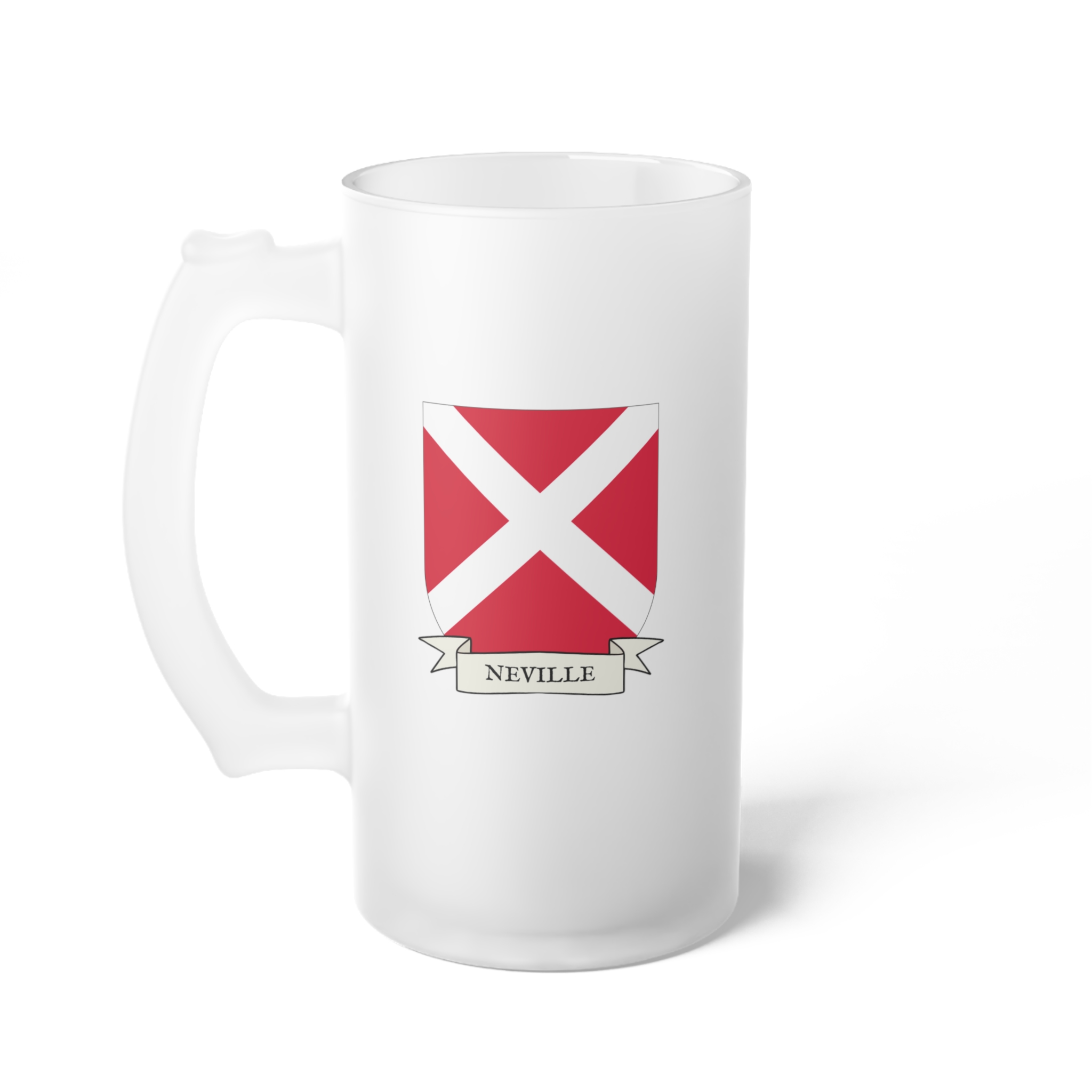 Neville Family Coat of Arms Frosted Glass 16 oz. Beer Mug
