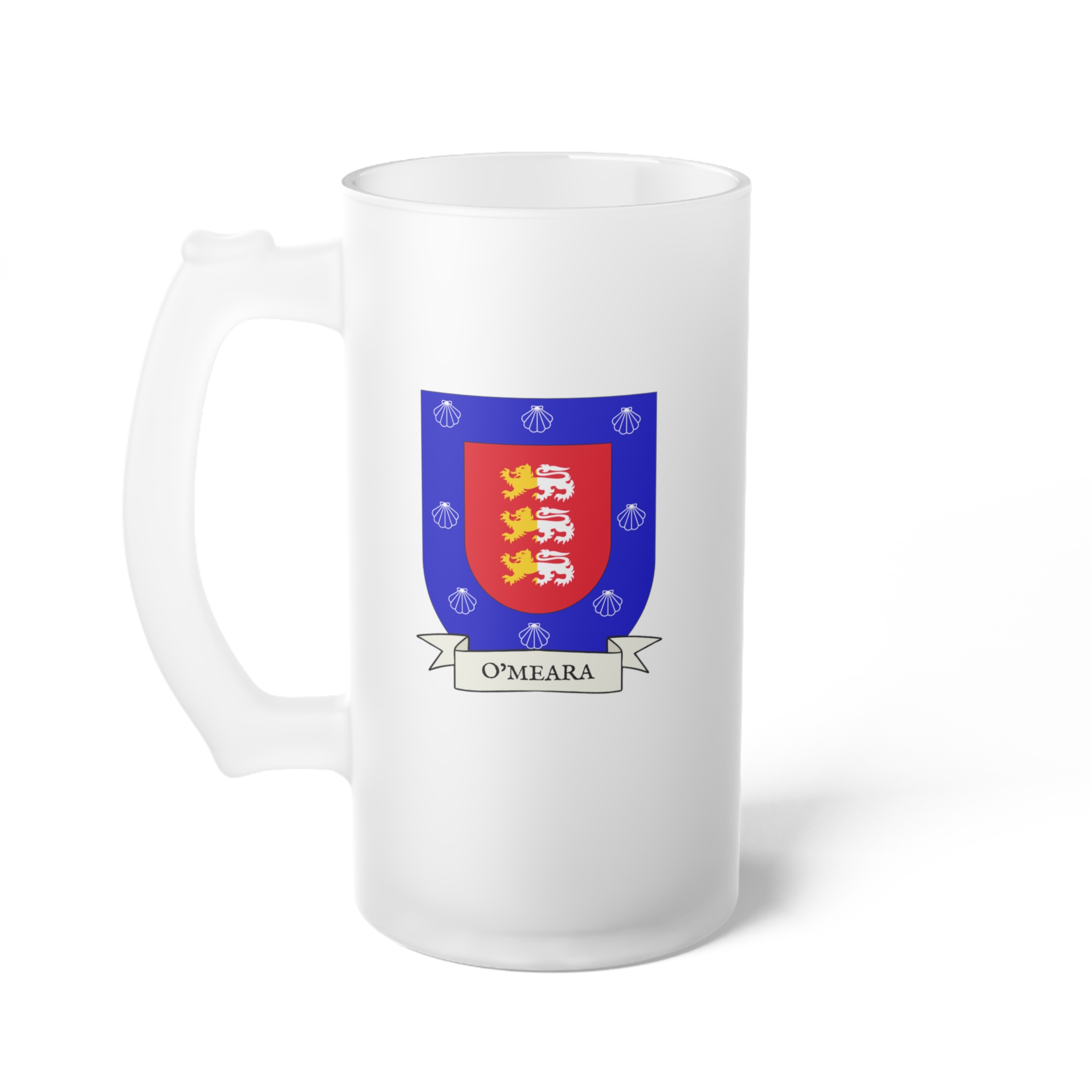 O’Meara Family Coat of Arms Frosted Glass 16 oz. Beer Mug