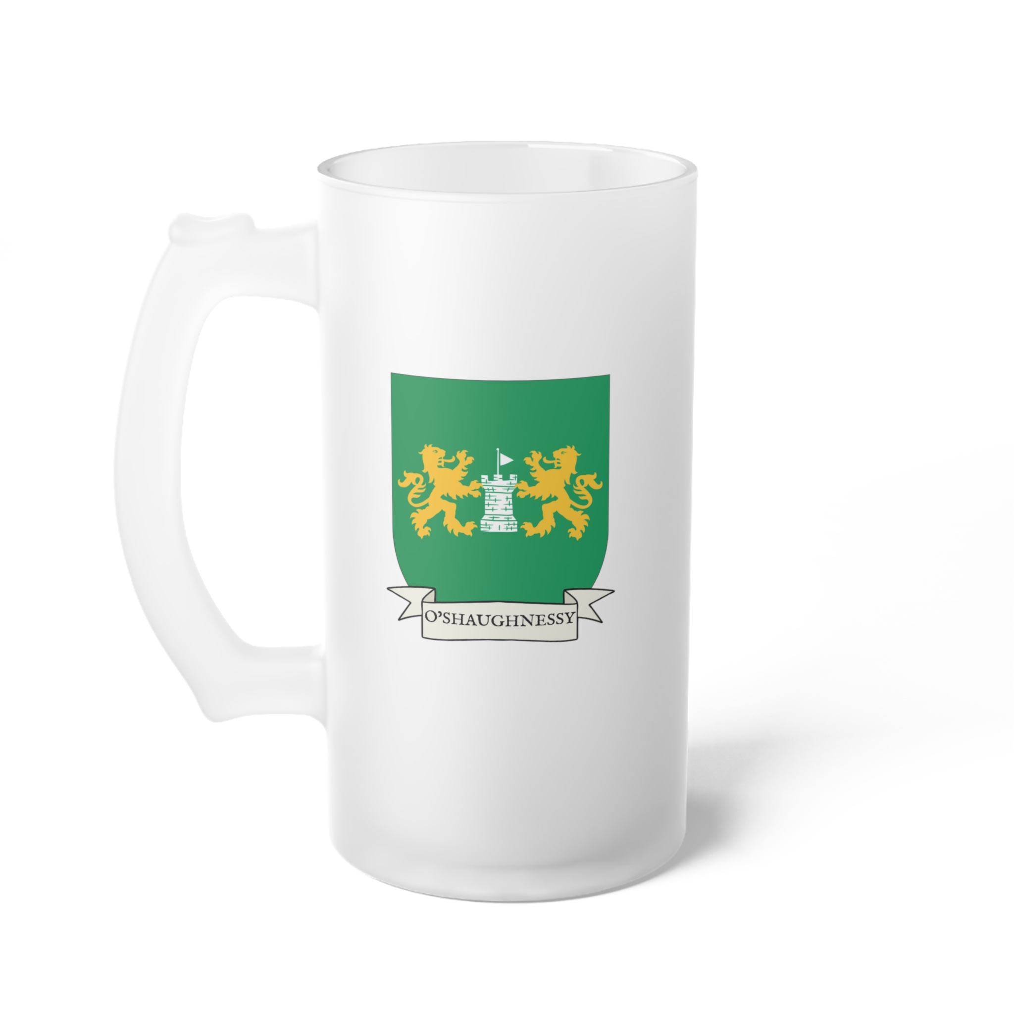 O’Shaghnessy Family Coat of Arms Frosted Glass 16 oz. Beer Mug
