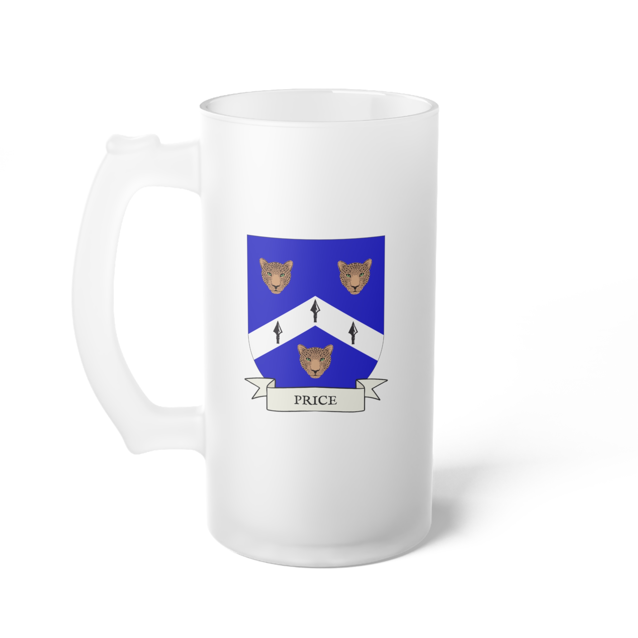 Price Family Coat of Arms Frosted Glass 16 oz. Beer Mug
