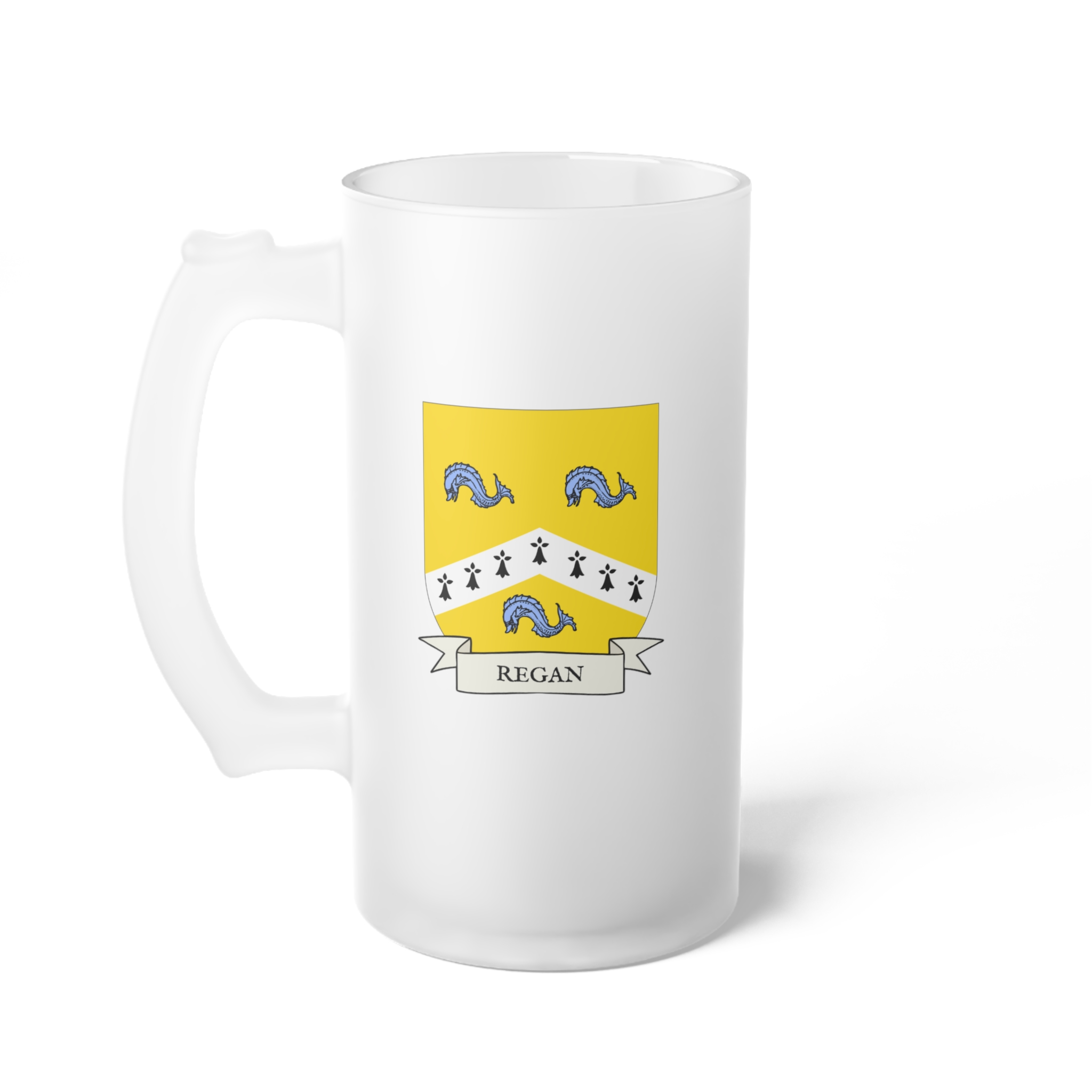 Regan Family Coat of Arms Frosted Glass 16 oz. Beer Mug