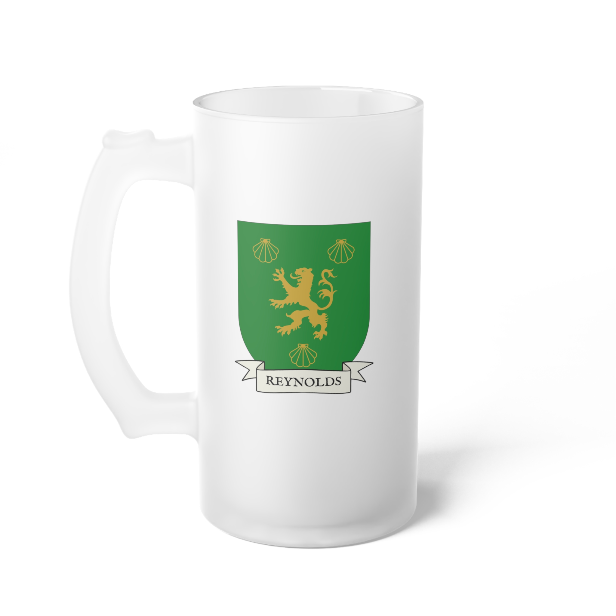 Reynolds Family Coat of Arms Frosted Glass 16 oz. Beer Mug