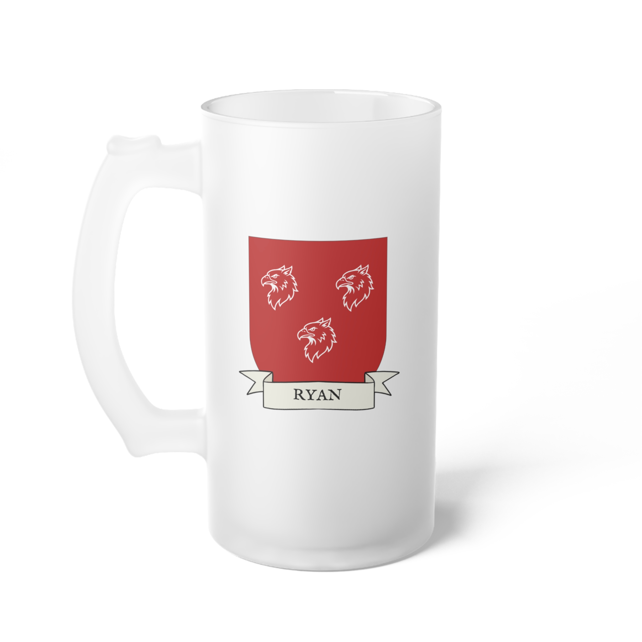 Ryan Family Coat of Arms Frosted Glass 16 oz. Beer Mug