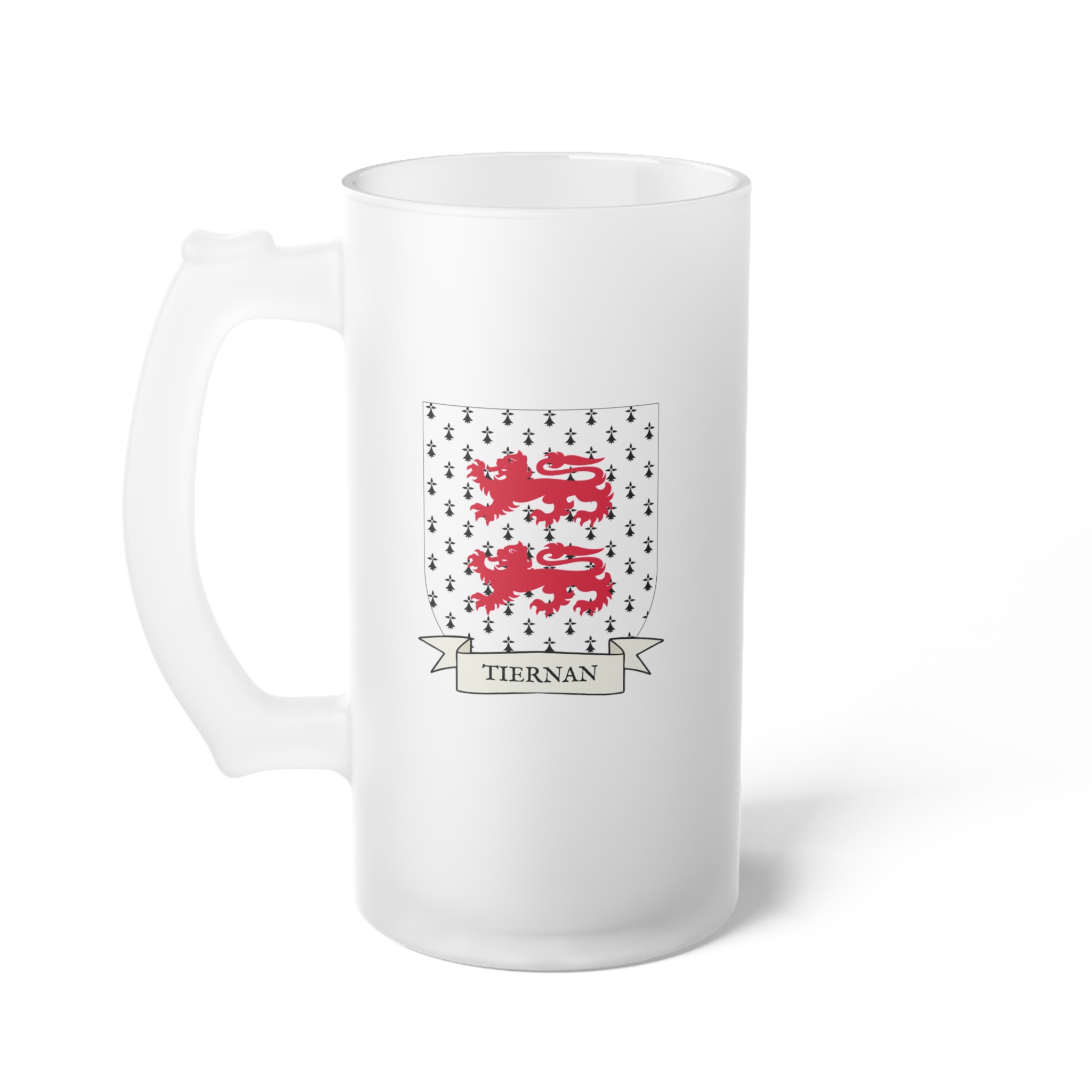 Tiernan Family Coat of Arms Frosted Glass 16 oz. Beer Mug