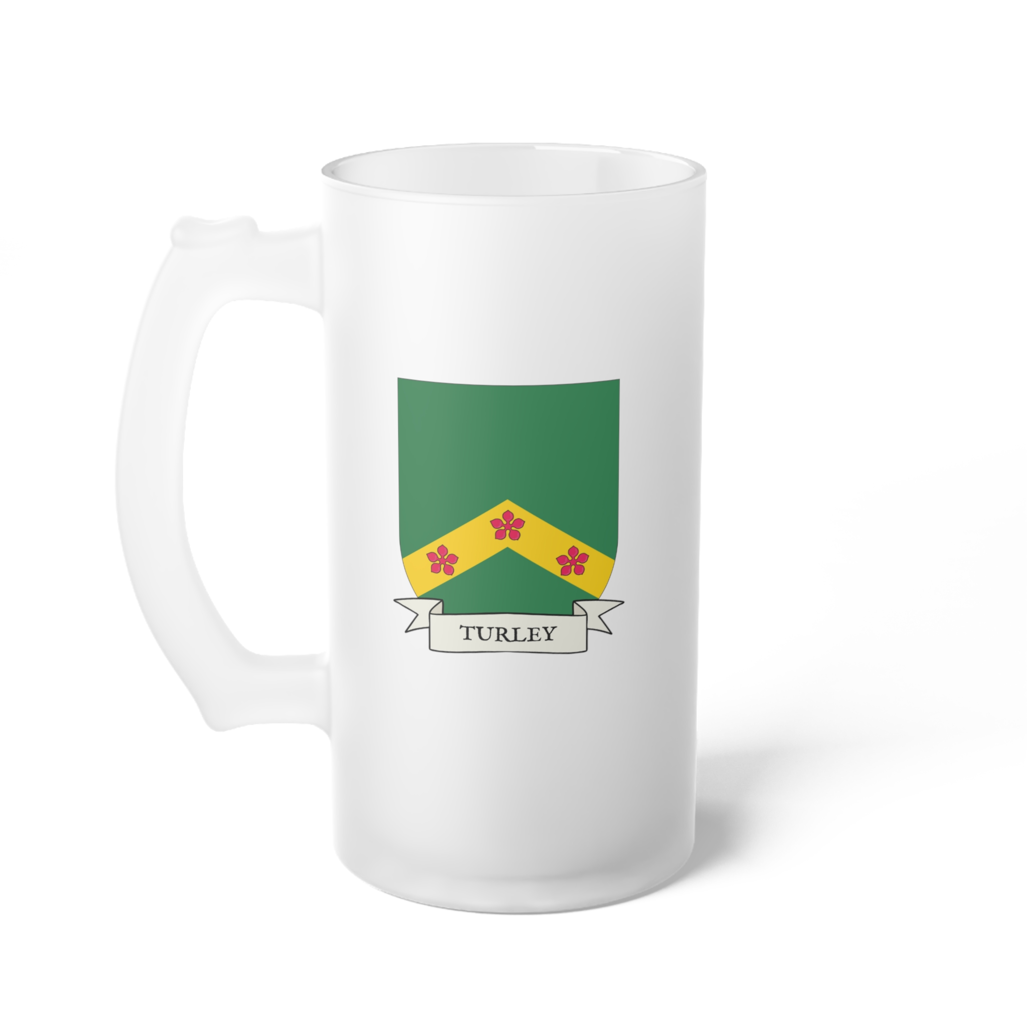 Turley Family Coat of Arms Frosted Glass 16 oz. Beer Mug
